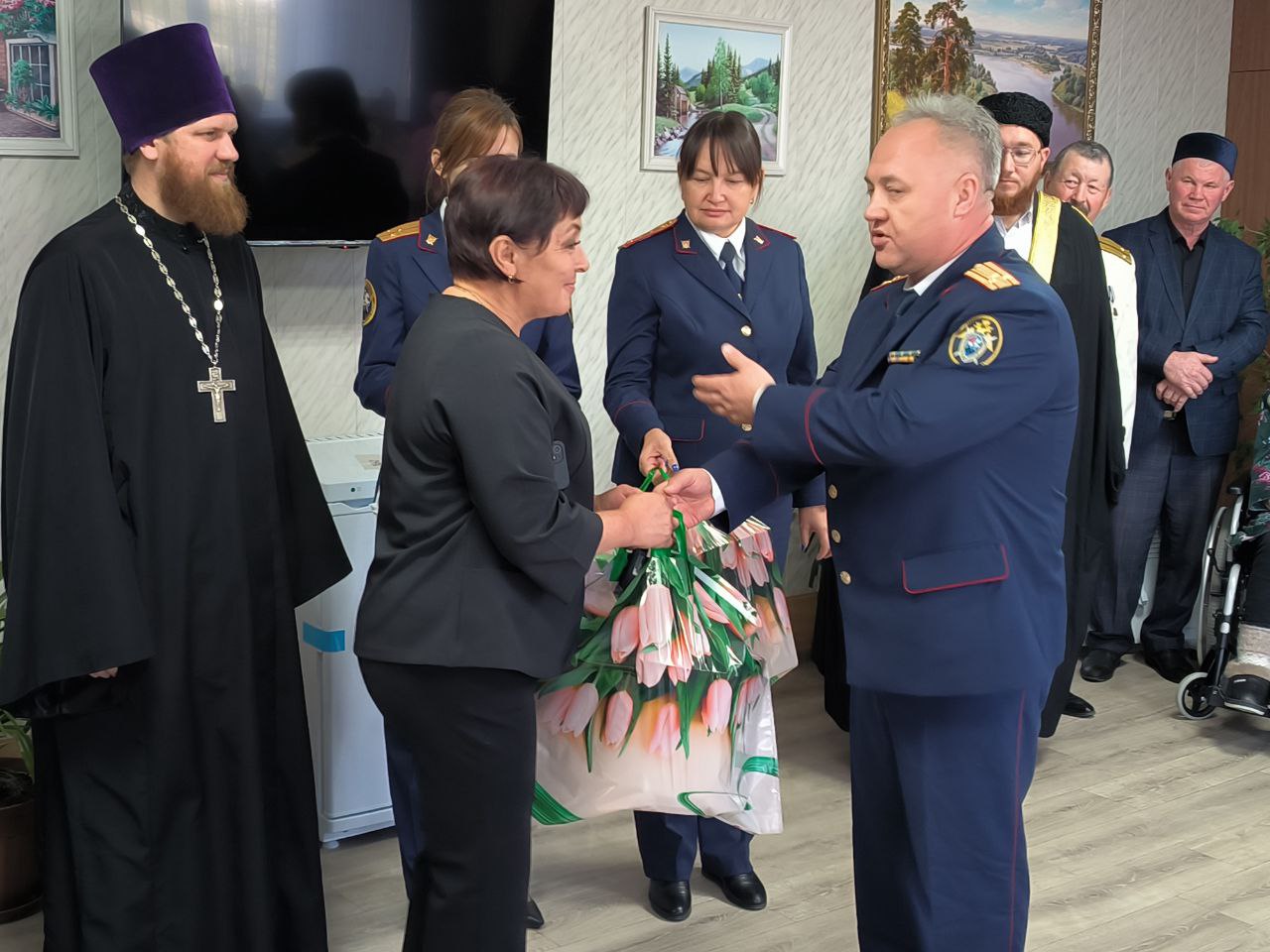 Руководитель Батыревского межрайонного следственного отдела Николай Петрович Яковлев поздравил подопечных центра с праздником, пожелал крепкого здоровья, бодрости духа и долголетия. Заранее узнав о нуждах центра, сотрудники следственного управления привезли в подарок необходимые бытовые товары.