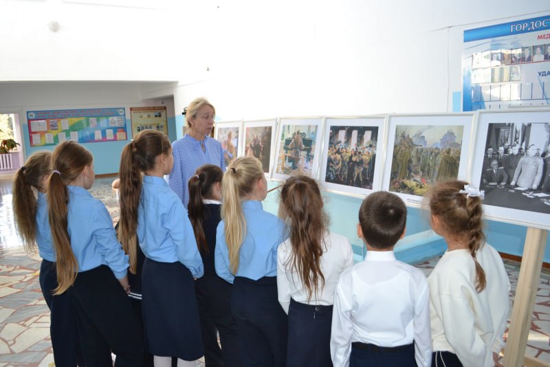 В Чиршкасинской ООШ о представленных на выставке работах, истории их создания и героях школьникам рассказала учитель географии Татьяна Пучкарёва.