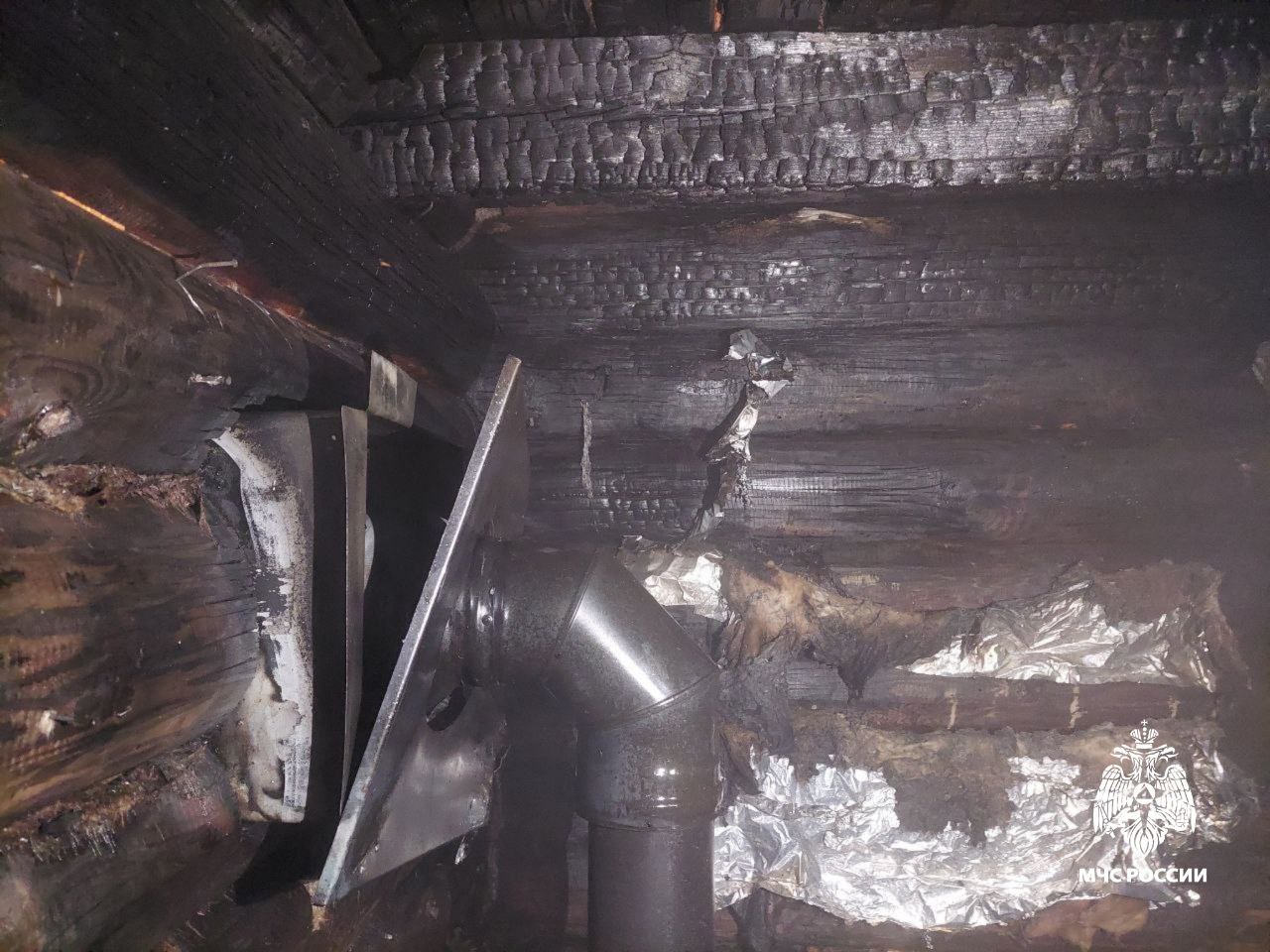 Сгорела внутренняя отделка первого этажа бани, огнем повреждена внутренняя отделка мансардного этажа и кровля строения.