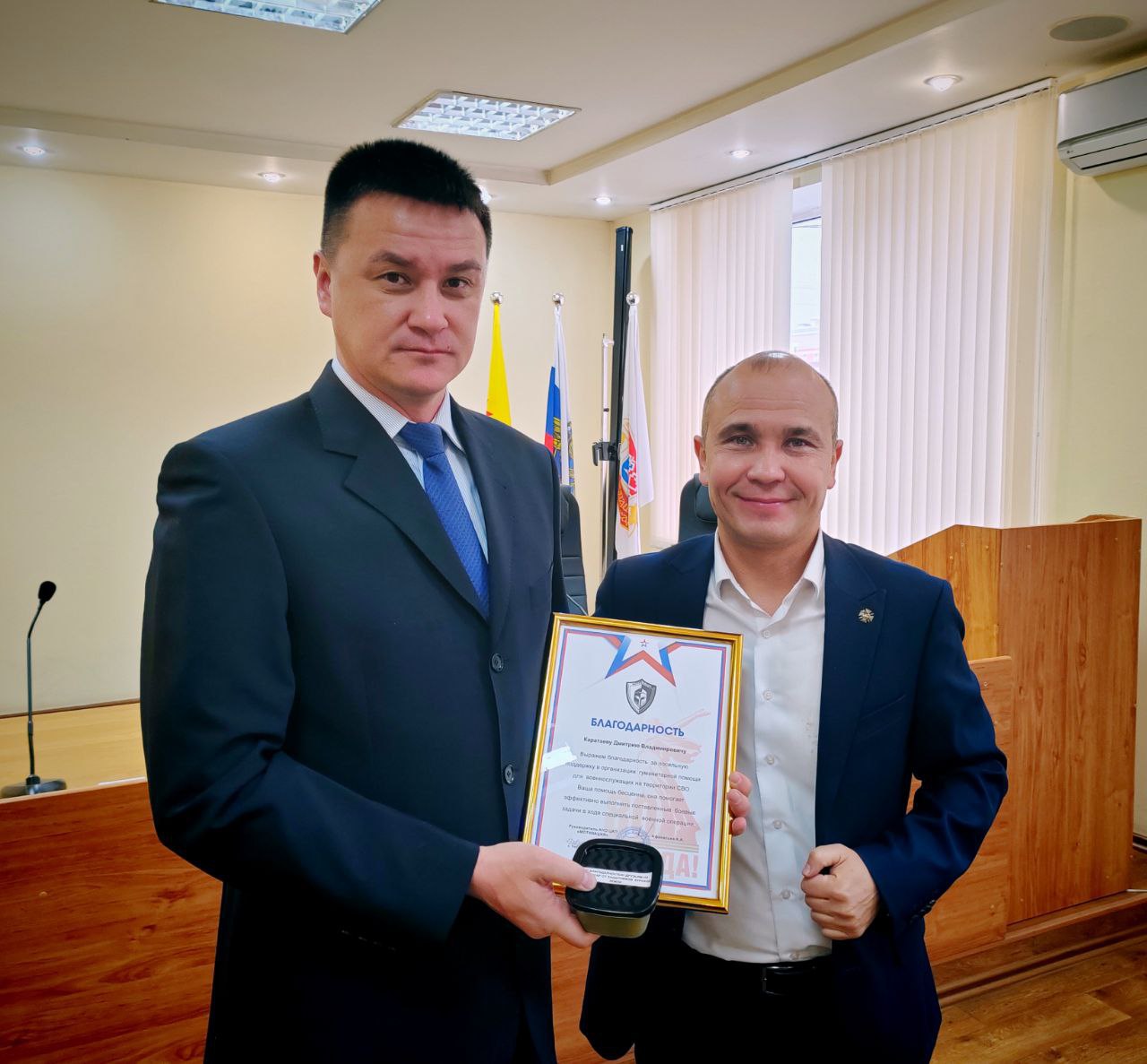 Руководитель Центра Антинаркотической пропаганды «Мотивация» Алексей Афанасьев, который собирается в зону СВО с гуманитарной помощью уже в девятый раз, вручил благодарность заместителю председателя Совета Дмитрию Каратаеву, который не остается в стороне и оказывает огромную посильную поддержку в сборе товаров и техники, направляемой на передовую.