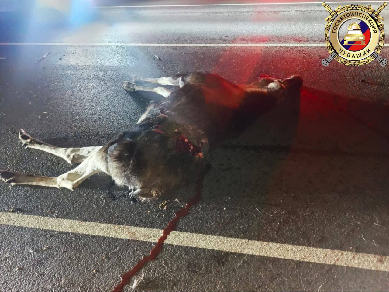 ДТП произошло 2 ноября в 18.20 на 112 км автодороги А-151, возле села Шемурша, в зоне действия дорожного знака "Дикие животные".