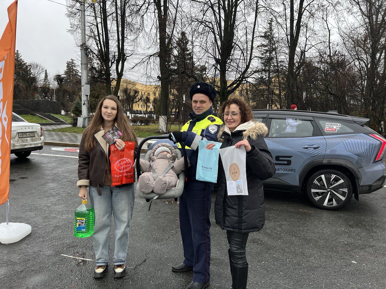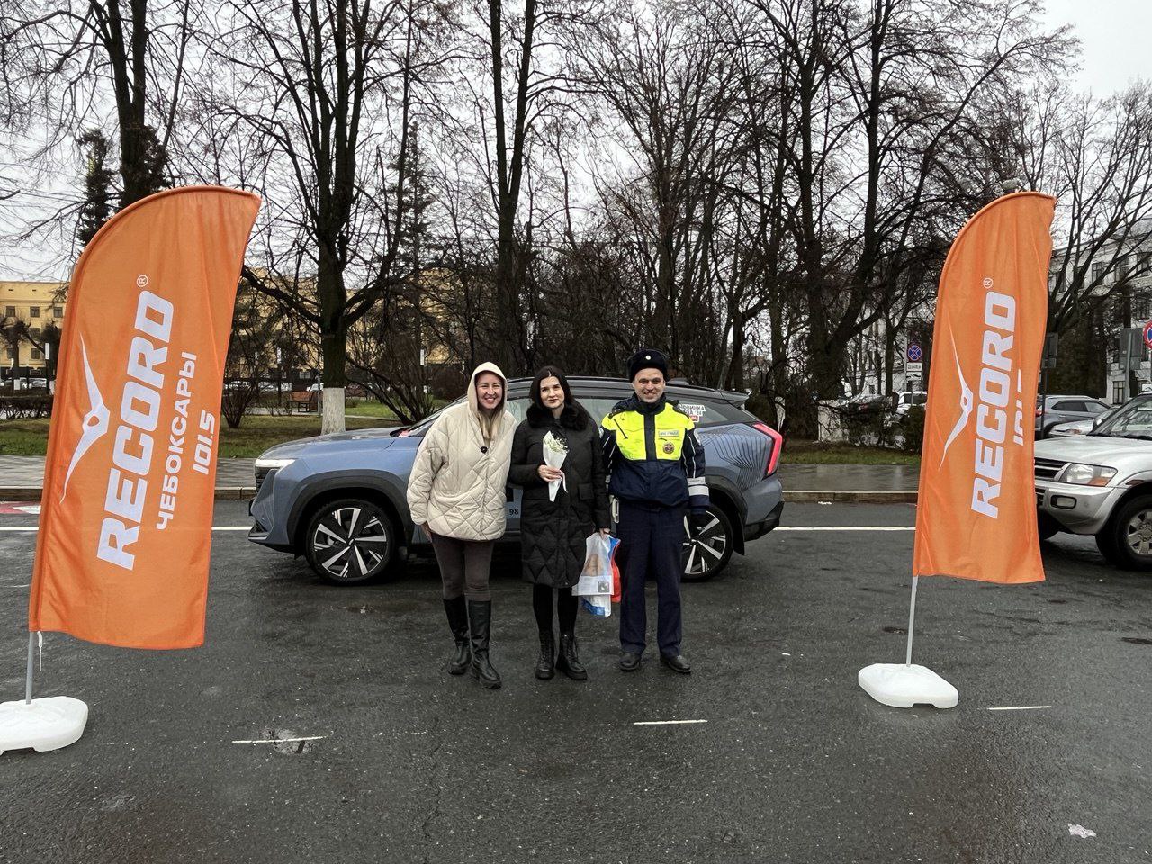 Вместе с представителями «Радио Рекорд» они поздравили мам-автомобилисток, в чьих машинах были дети.