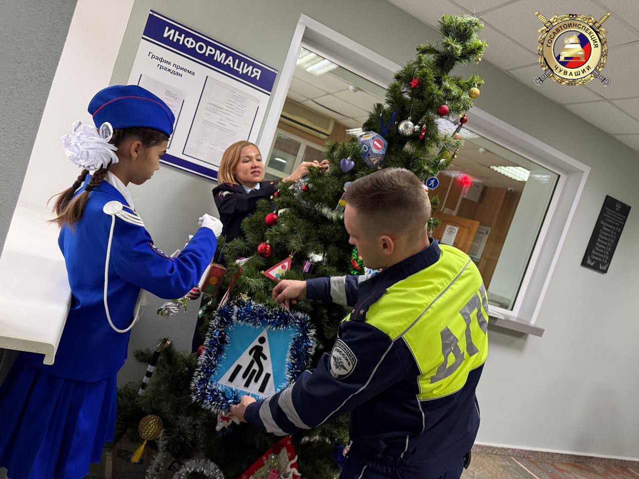 Лучшие работы украсили новогоднюю красавицу в фойе здания республиканской Госавтоинспекции на Богданке-37.