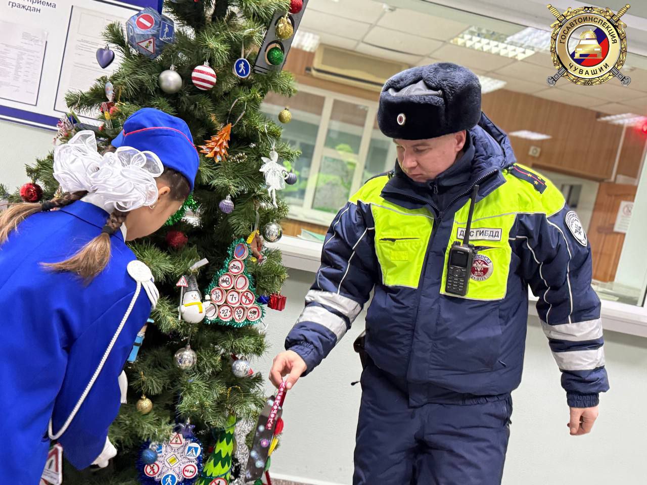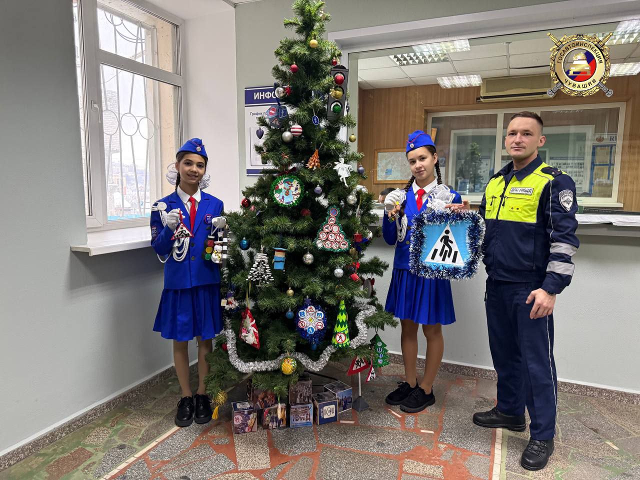 ЮИДовцы подарили дорожным полицейским сделанные своими руками тематические ёлочные игрушки, пожелали безопасных дорог и спокойных дежурств.
