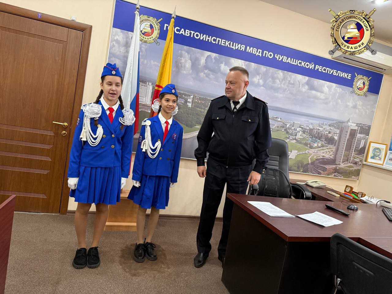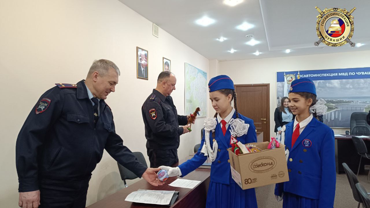 Сегодня семиклассники побывали в Госавтоинспекции Чувашии, чтобы отчитаться о проделанной работе за прошедший год и поздравить своих учителей в погонах.