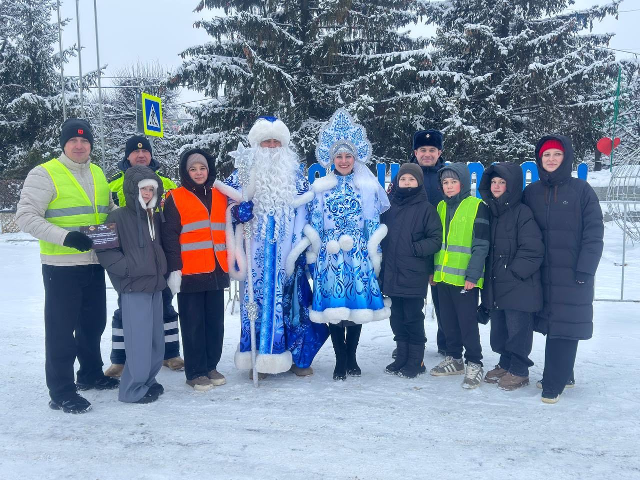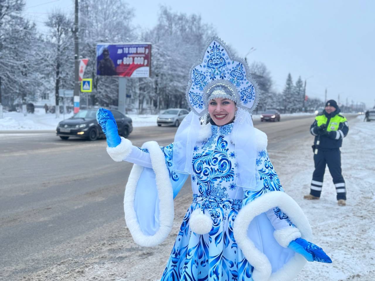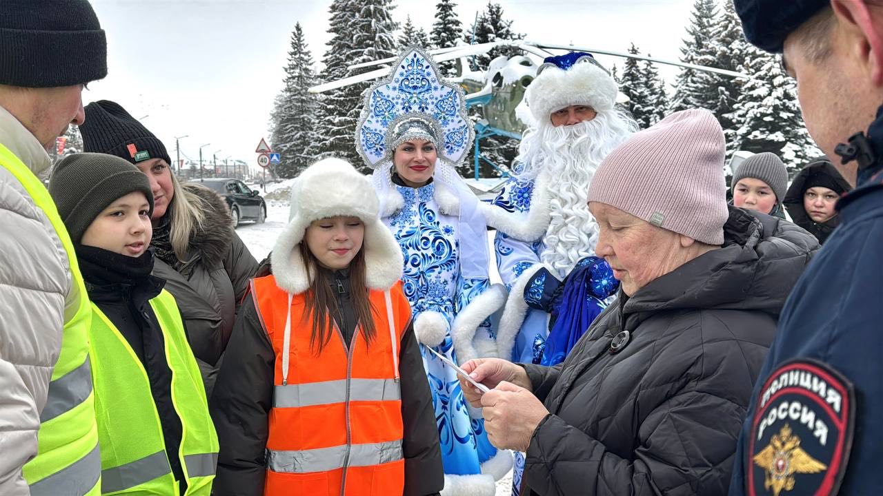 Школьники читали стихи, а Снегурочка желала всем счастливого пути и безаварийного нового года. Улыбки, поздравления и важные напутствия — такой нестандартный подход точно запомнится каждому участнику дорожного движения!
