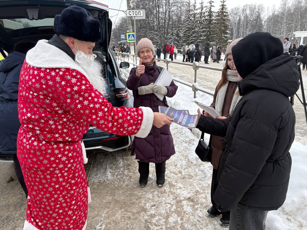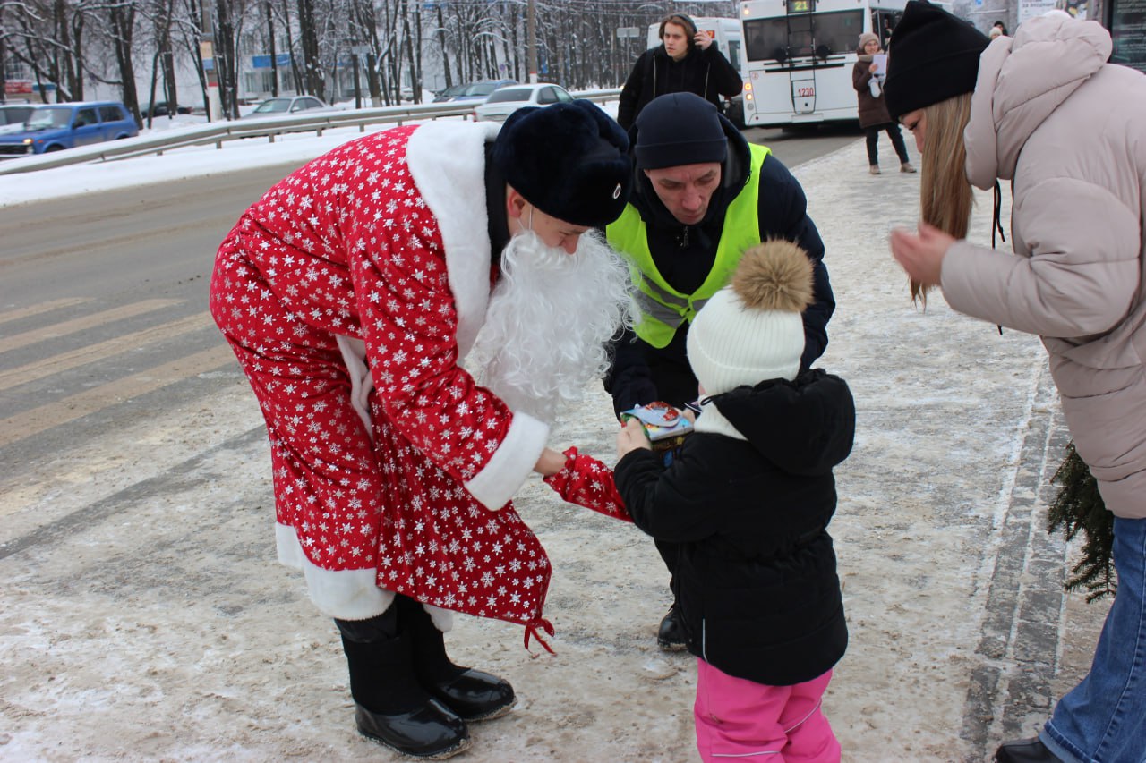 Рядом работал праздничный экипаж сотрудников Госавтоинспекции во главе с Полицейским Дедом Морозом, который дарил подарки, поздравлял с наступающим праздником и напоминал о правилах безопасности в Интернете и при общении с незнакомцами.