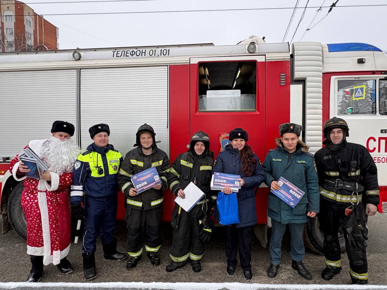 Участниками акции стали сотрудники Специализированной пожарно-спасательной части города Чебоксары, которые возвращались с ликвидации возгорания, остановились, пожелали жителям Чебоксар соблюдать и правила пожарной безопасности.