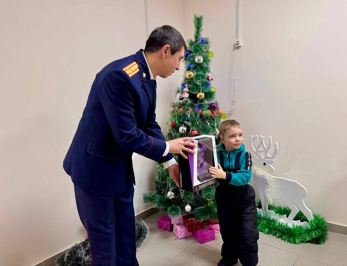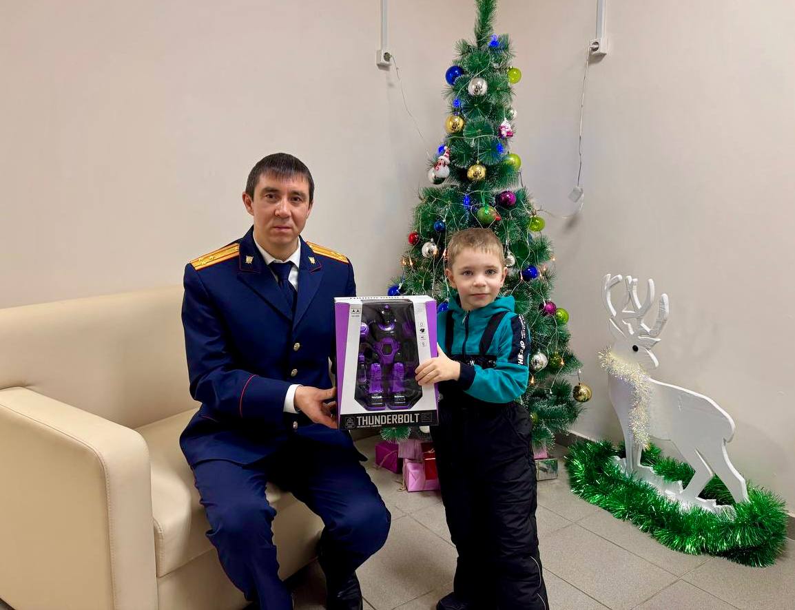Отдельной радостью для подопечных ведомства стало исполнение заветного желания. Руководитель Ядринского межрайонного следственного отдела Андрей Геннадьевич Иванов лично вручил четырёхлетнему Кириллу, ребёнку-инвалиду из многодетной семьи Кузнецовых, желанного робота, о котором мальчик давно мечтал. Этот подарок стал символом настоящего новогоднего чуда.
