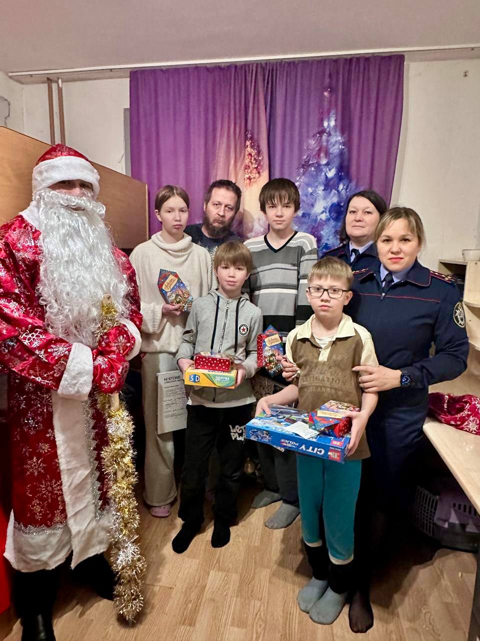 Сотрудники Цивильского межрайонного следственного отдела также не остались в стороне и посетили семью Львовых, где воспитываются трое несовершеннолетних детей, чтобы поздравить их с Новым годом и Рождеством и передать праздничные сладкие наборы.