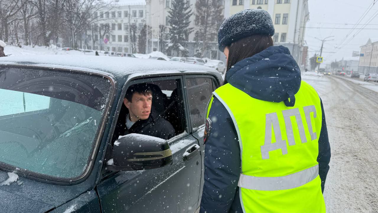 Женский экипаж ДПС в составе инспекторов группы по пропаганде БДД провел среди чебоксарских водителей викторину на знание ПДД.
