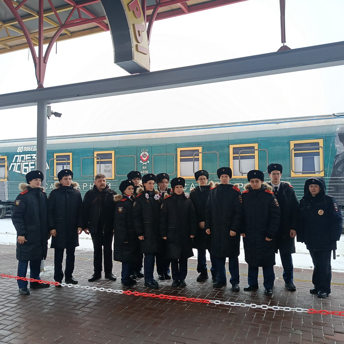Сотрудники Чувашского линейного отдела МВД России на транспорте на железнодорожном вокзале станции Чебоксары обеспечили охрану общественного порядка во время стоянки уникального передвижного музея «Поезд Победы».