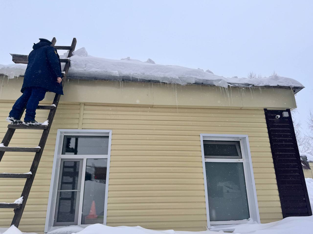 На место происшествия выезжал прокурор Цивильского района Евгений Петров. В настоящее время визуальный осмотр показал, что на сегодняшний день с крыши здания не убран снег и наледь, в том числе свисающие ледовые наросты.