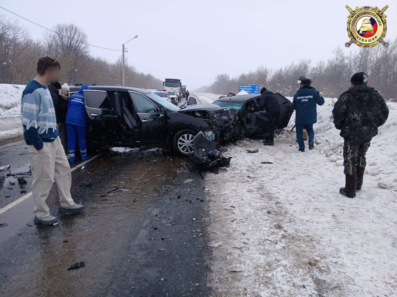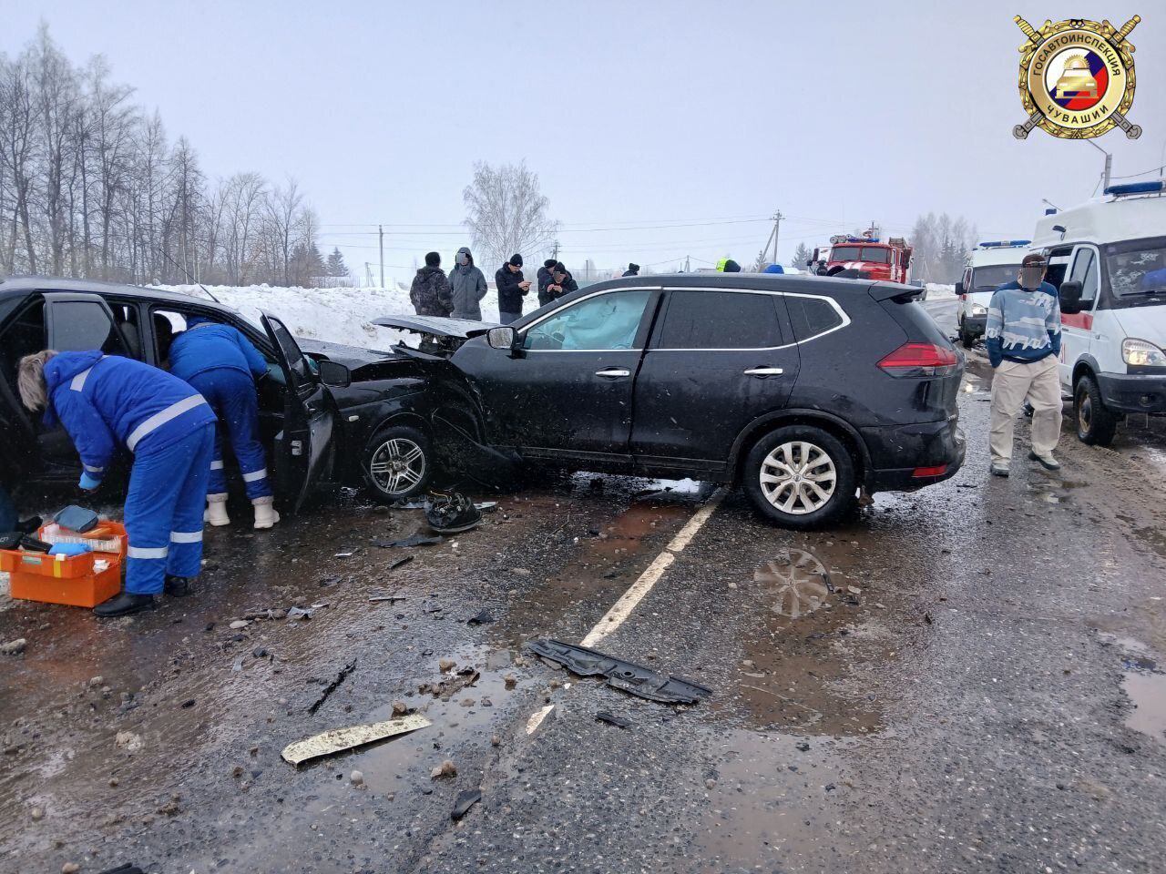 По первоначальной информации, 51-летний водитель Nissan X-Trail, житель села Красные Четаи, выехал на полосу встречного движения, где столкнулся с попутным Volkswagen Polo, после чего его отбросило под встречную Lada Priora.