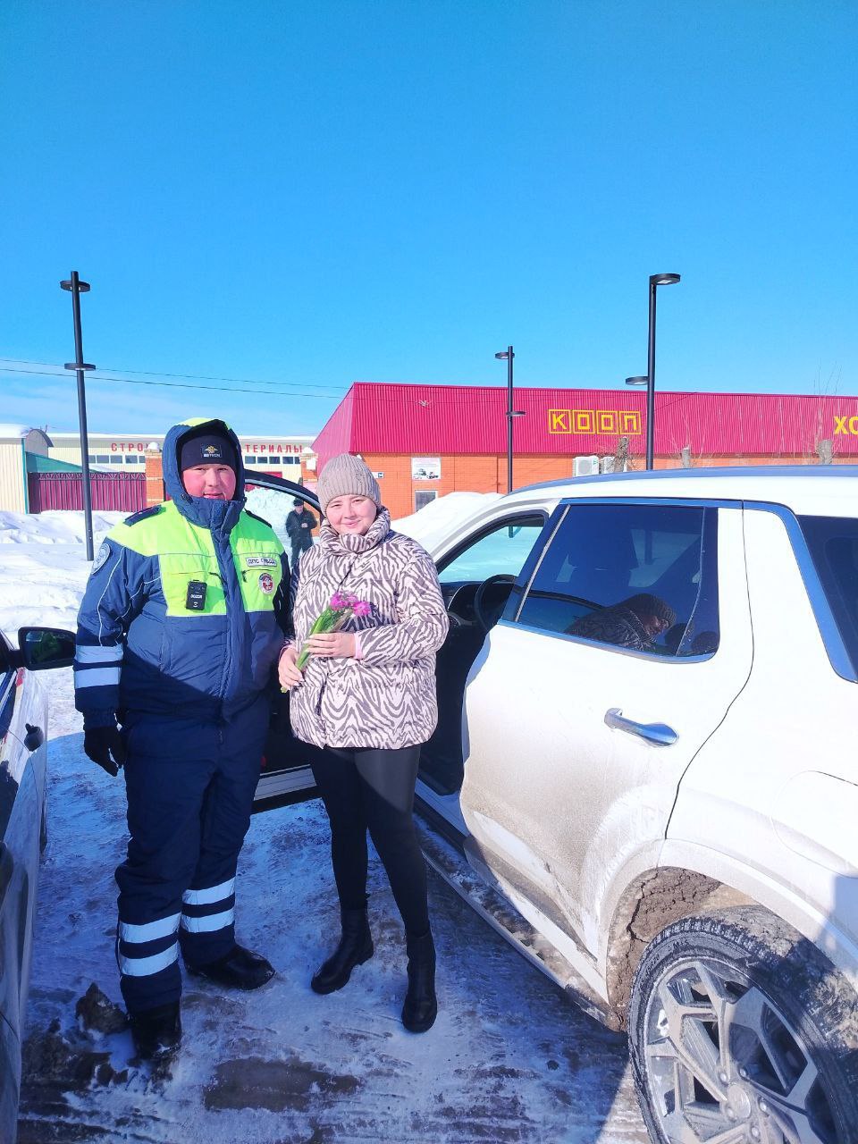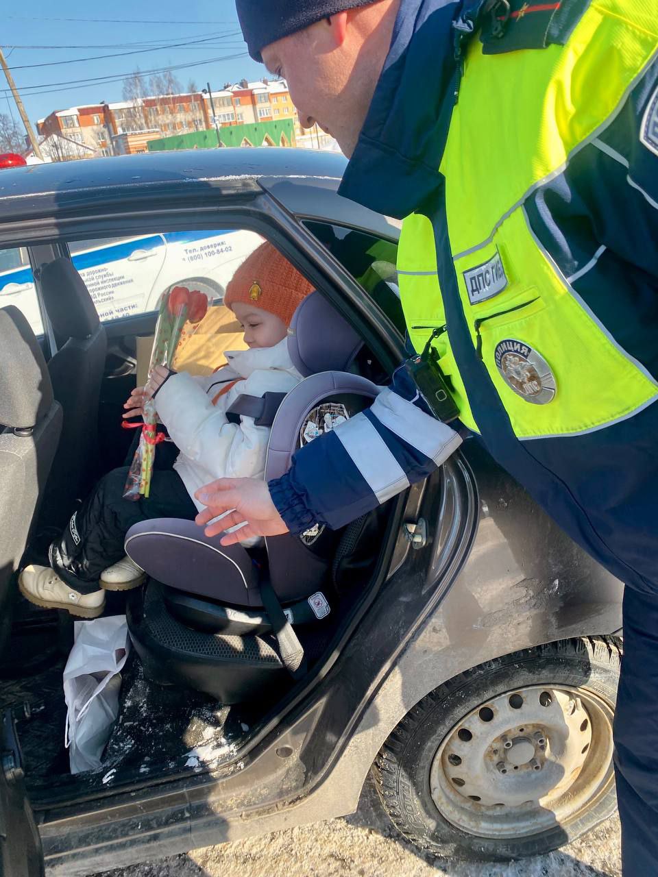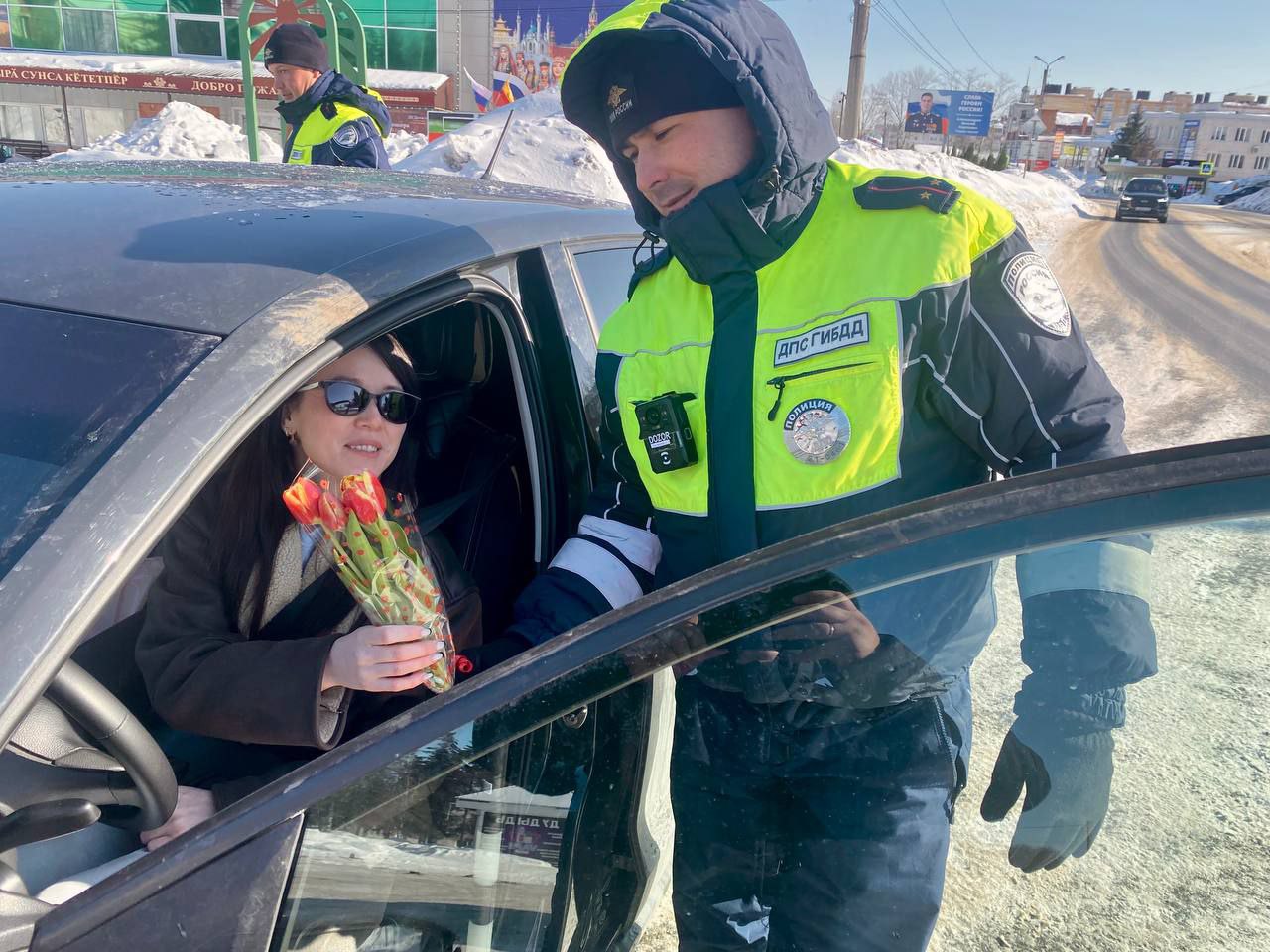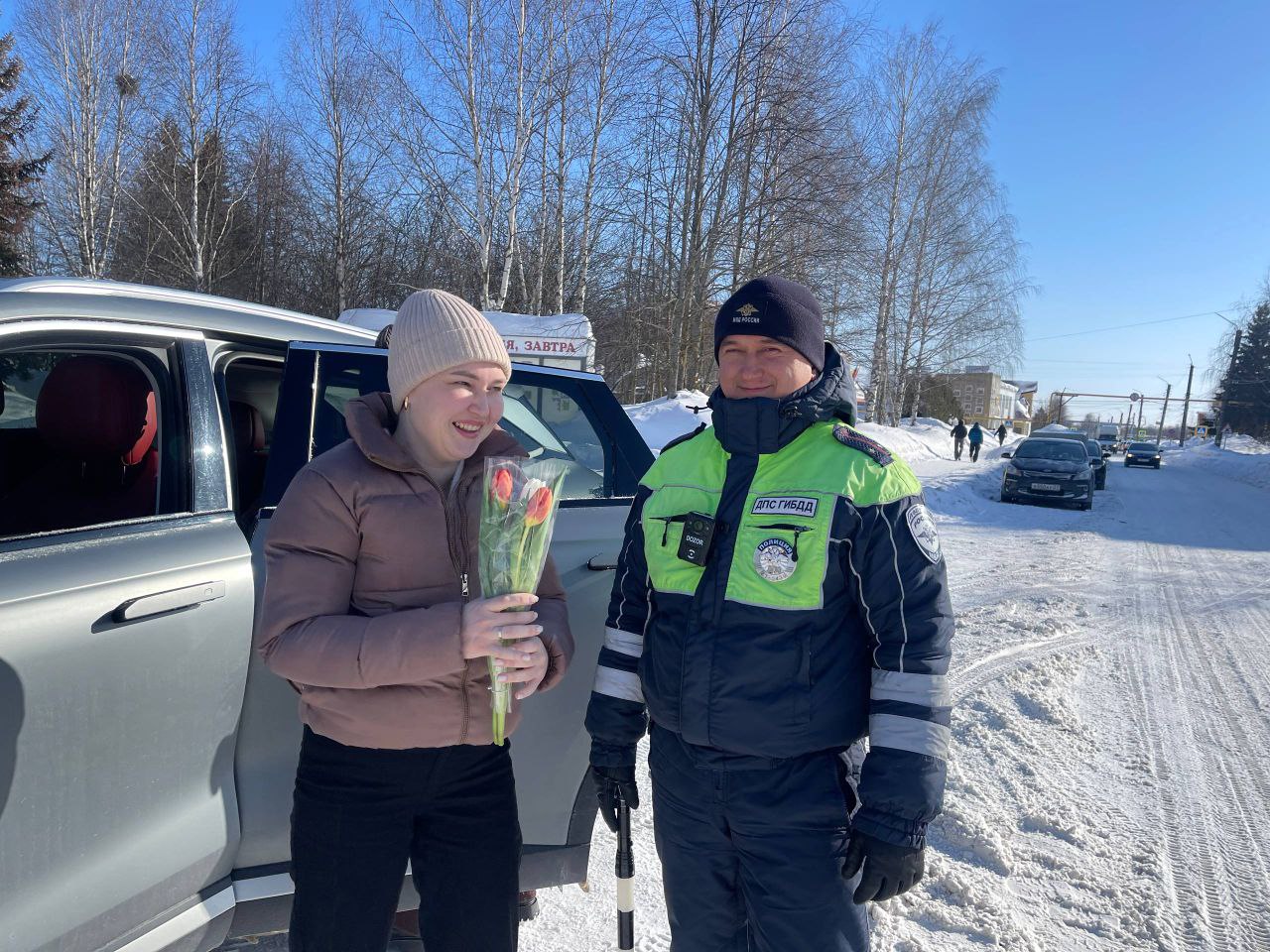 Наши сотрудники вышли на дороги, чтобы подарить женщинам-водителям не только весенние букеты, но и заряд хорошего настроения.