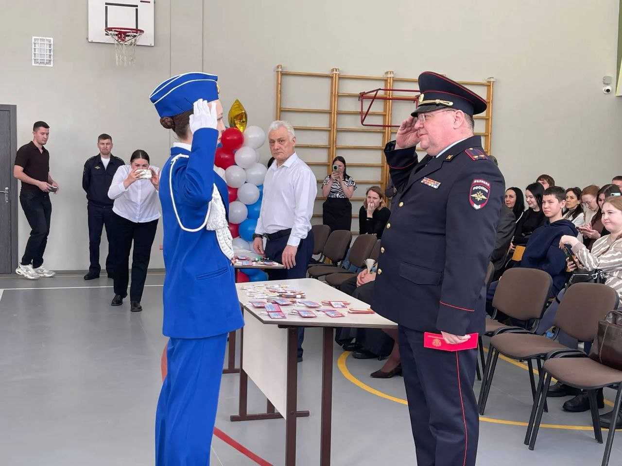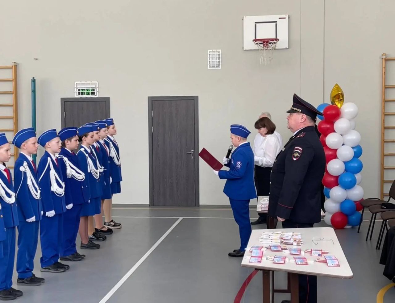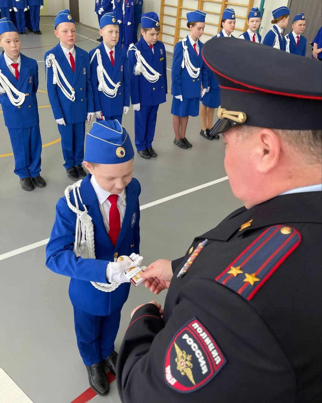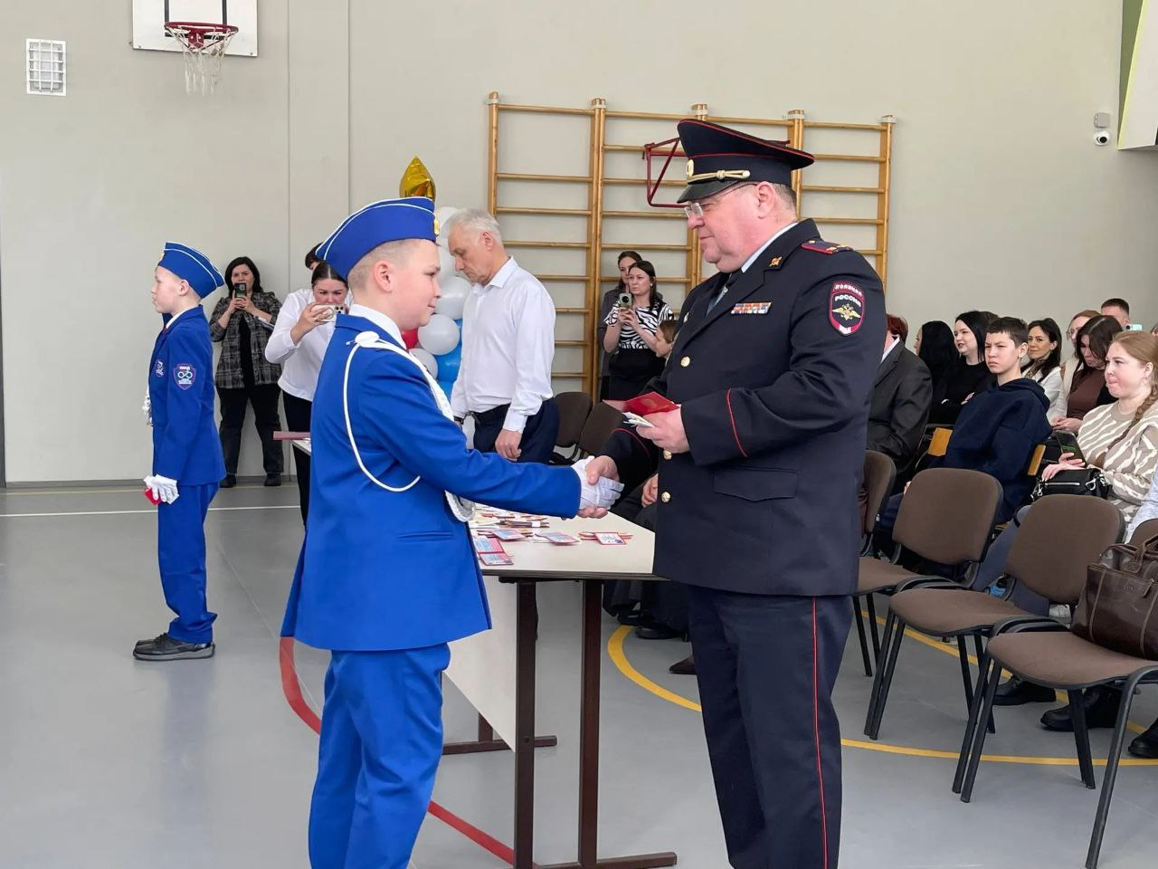 Подполковник полиции, вручая ребятам удостоверения кадета и очередные звания, напомнил о необходимости быть внимательными на дороге, об отказе от использования наушников и телефонов при переходе проезжей части.