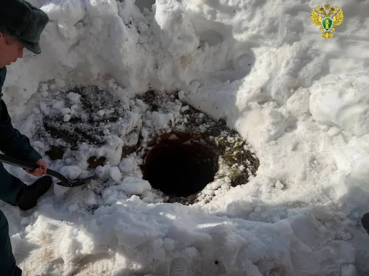 Осмотр места происшествия показал, что крышка люка находилась рядом с колодцем