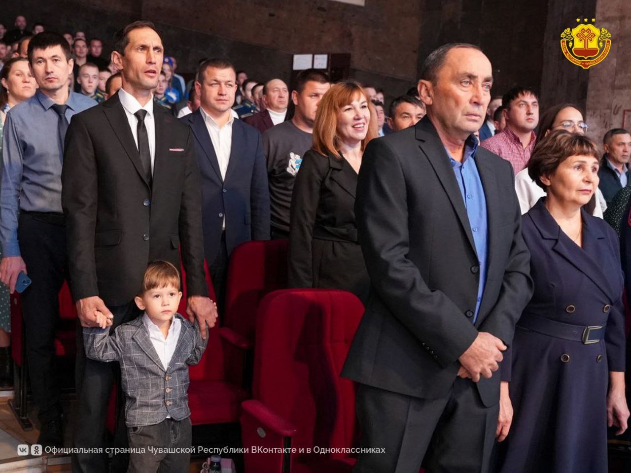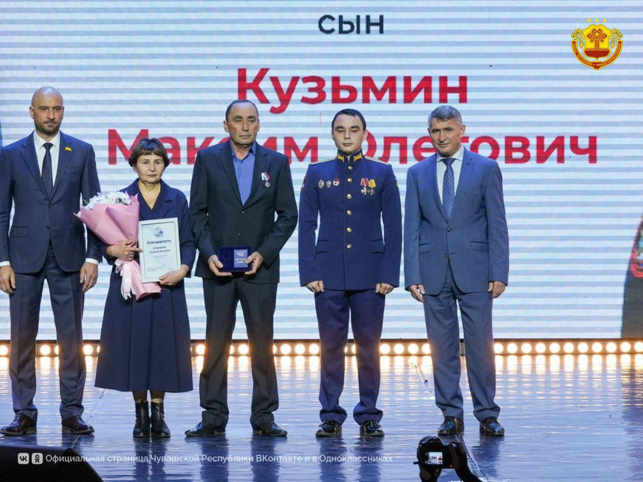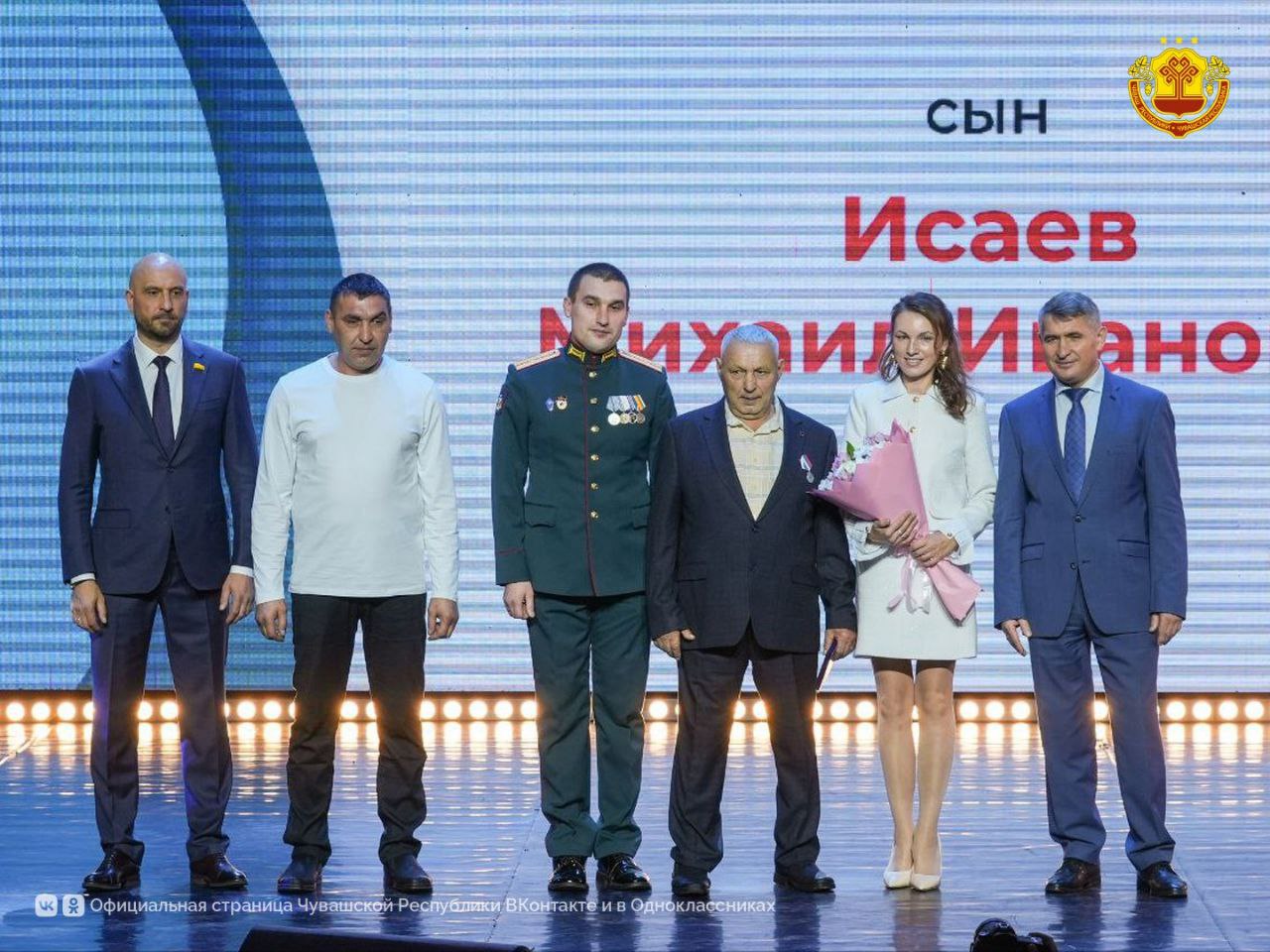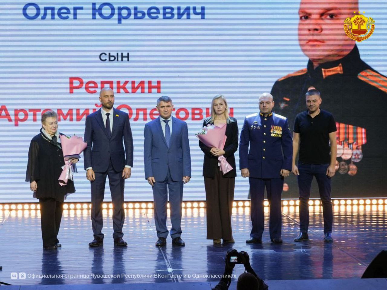Медаль общественного признания «Отец солдата» из рук Главы Чувашии получили родители, чьи сыновья отличились в ходе проведения спецоперации: Олег Репкин — за подполковника Артемия Репкина, Евгений Холкин — за лейтенанта Александра Холкина, Олег Кузьмин — за младшего лейтенанта Максима Кузьмина, Иван Исаев — за младшего лейтенанта Михаила Исаева.
