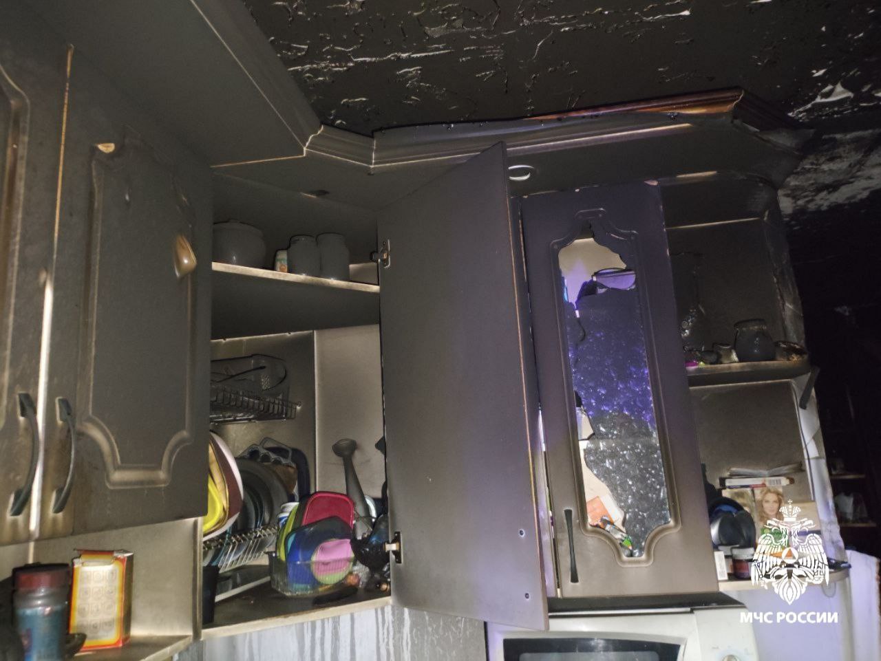 Огнём повреждены холодильник, кухонный гарнитур и отделка помещения. Площадь пожара составила 13 квадратных метров. Ликвидация возгорания потребовала участия 10 специалистов и 3 единиц техники МЧС России.