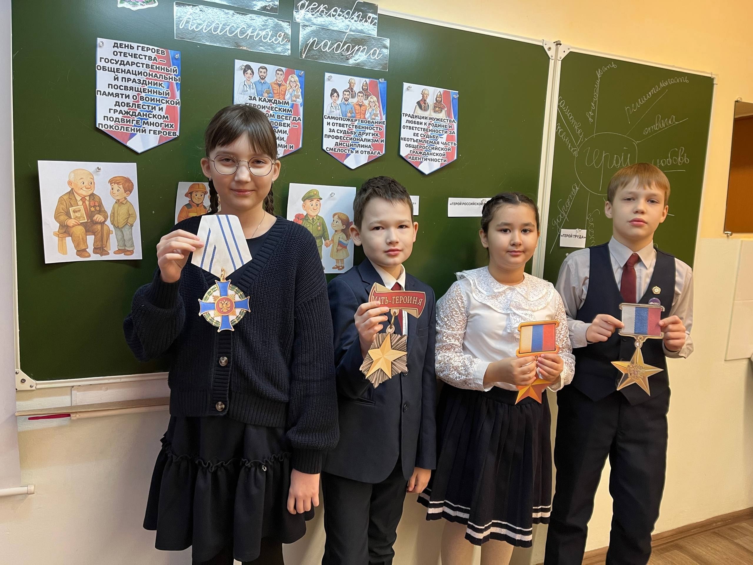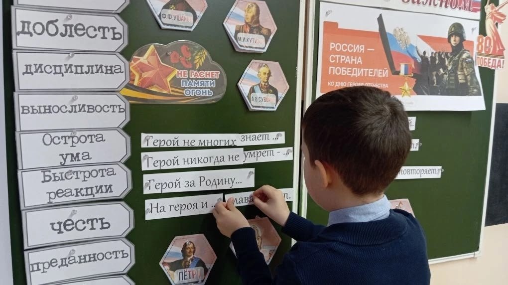 Школьники с педагогами обсудили качества героя, поговорили о подвигах в различных сферах - военной, научной, спортивной, искусстве, обсудили важность сохранения памяти о героях прошлого и настоящего.