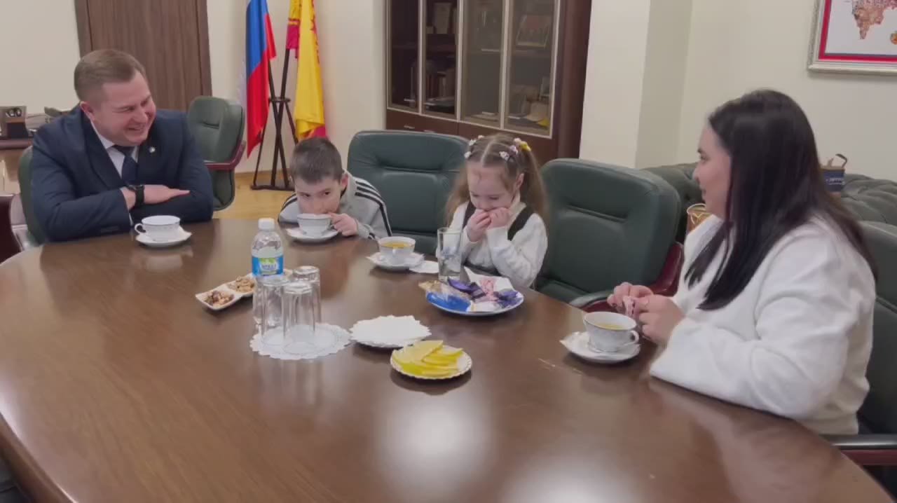 Захар растёт в многодетной семье, где он один из пятерых детей. В беседе с мамой мальчика Владимир Степанов обсудил действующие меры региональной поддержки для таких семей, а также рассказал о новых спортивных объектах в Чебоксарах.