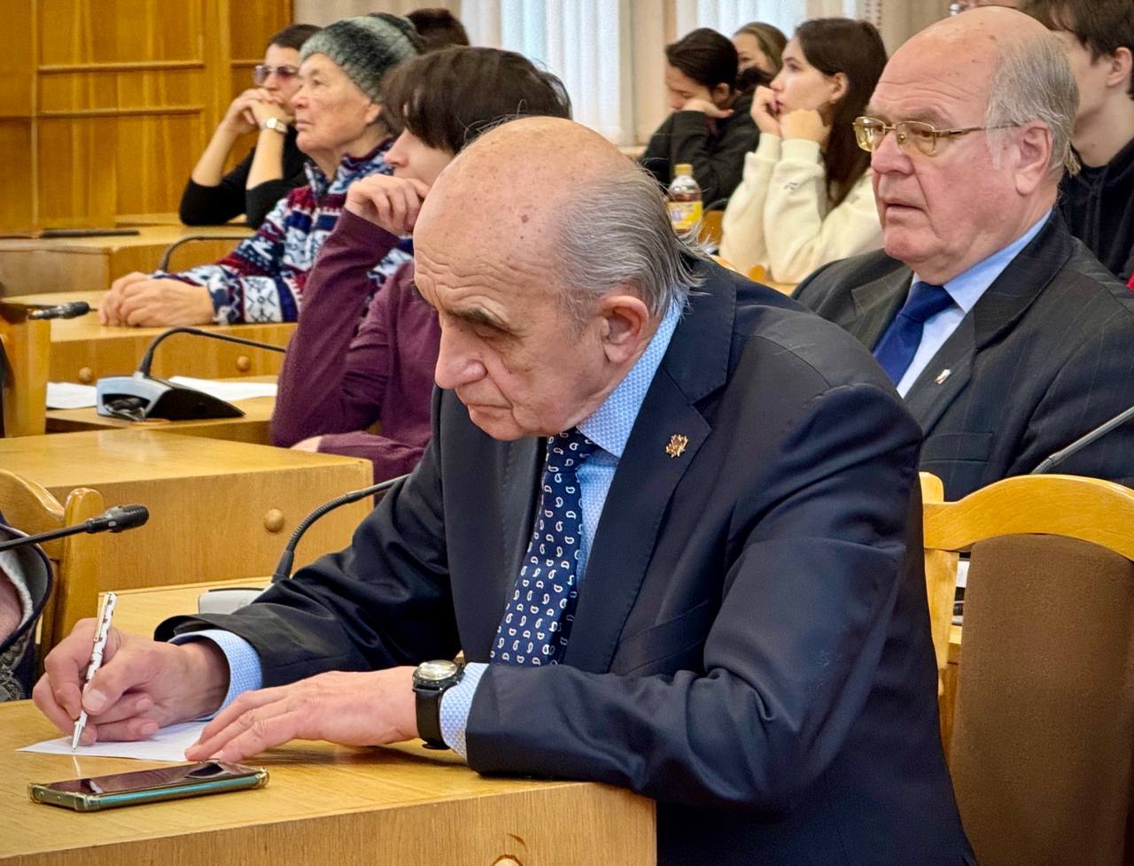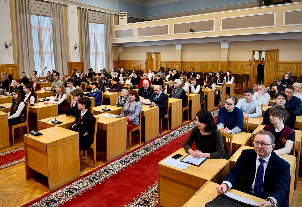 А днём в администрации Чебоксар прошла большая конференция «С.М. Ислюков: наследие и современность». Это был не просто формальный сбор, а живой диалог поколений. В зале рядом сидели ветераны, лично знавшие Семена Матвеевича, ученые, студенты и школьники — всего около 100 человек.