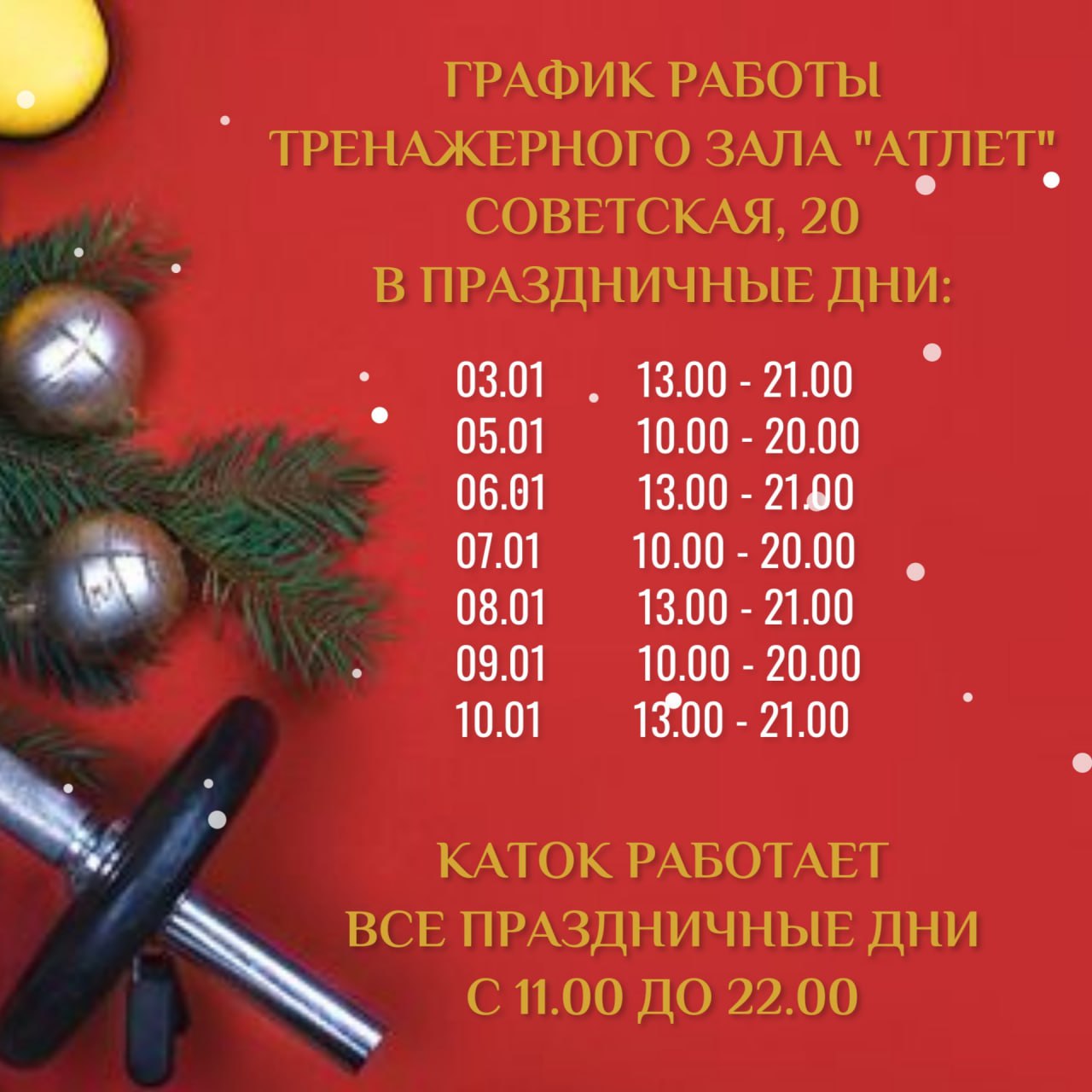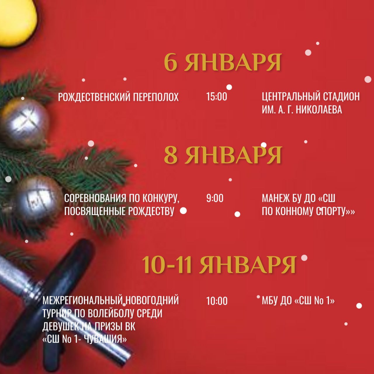 Делимся с вами афишей спортивных мероприятий в период новогодних праздников и каникул в городе Новочебоксарске и графиком работы учреждений данной сферы