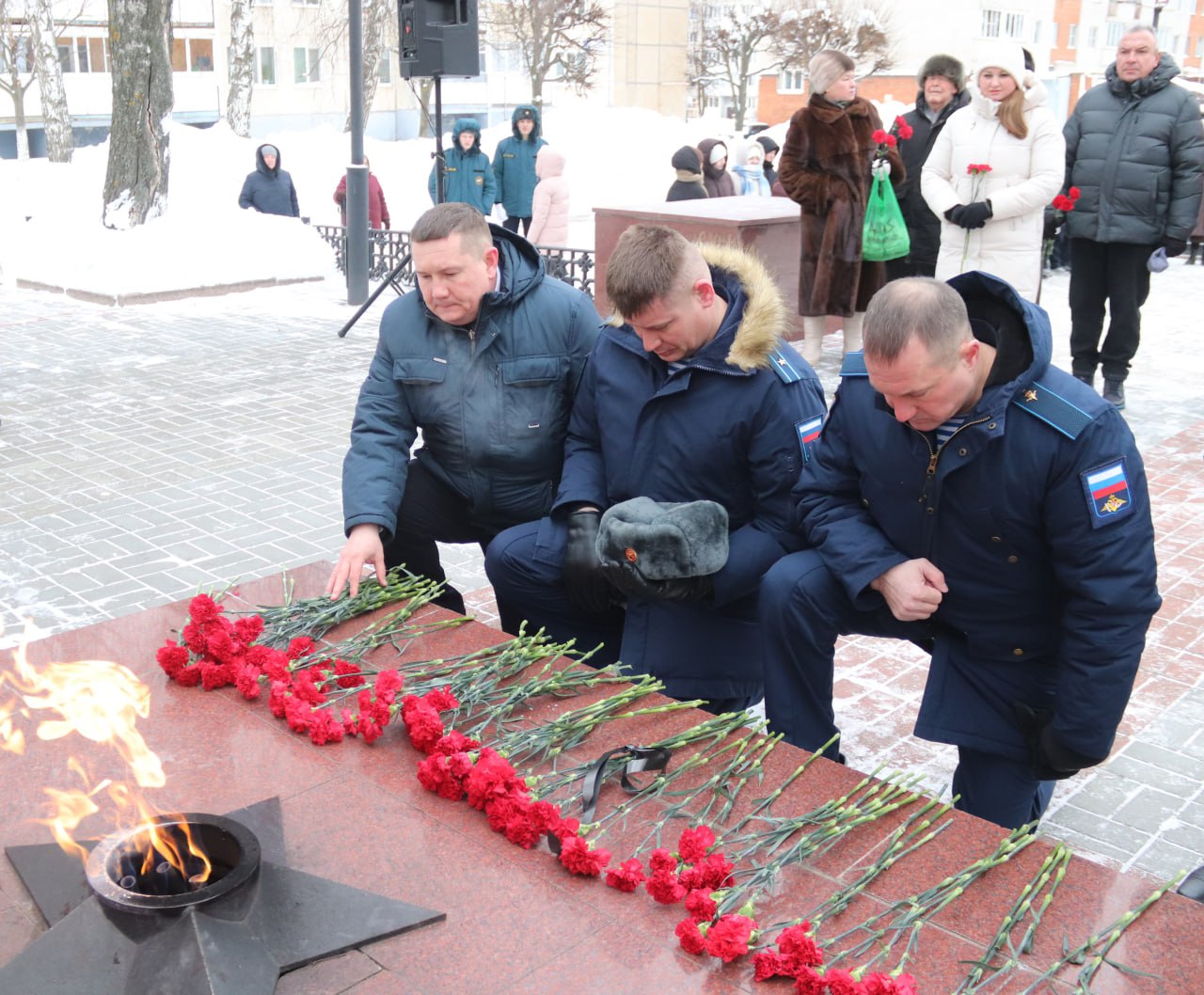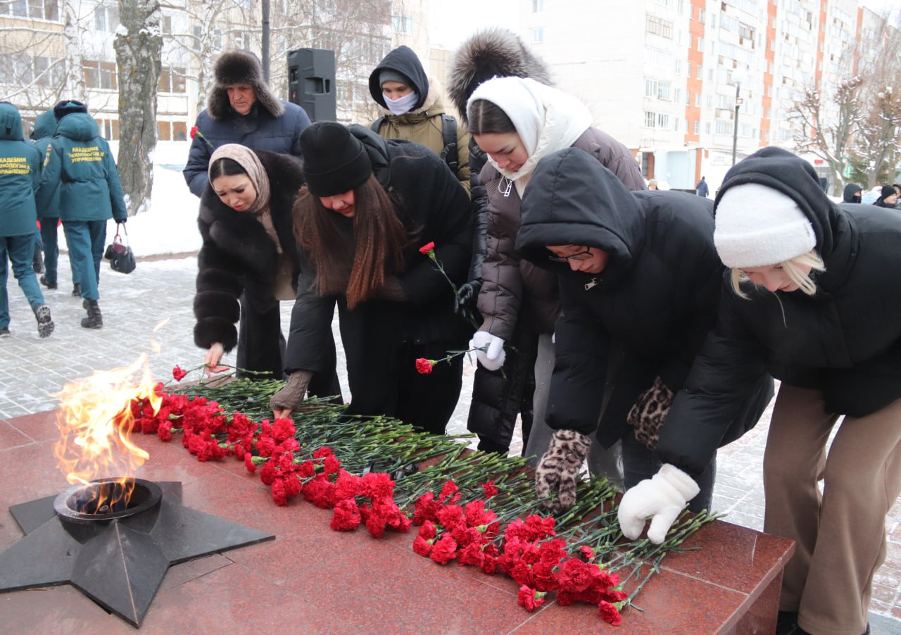 В память о жертвах блокады официальные лица, волонтеры, учащиеся образовательных учреждений и жители города возложили цветы к Вечному огню на Аллее Славы.