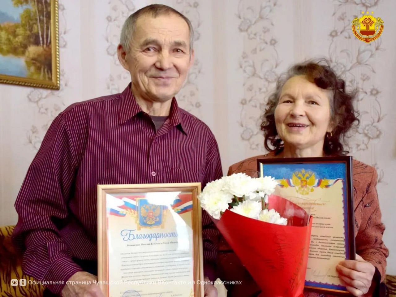 «Всегда работали, некогда было ссориться», — с улыбкой отмечают золотые юбиляры семейной жизни Романовы из деревни Сормово Красночетайского округа.