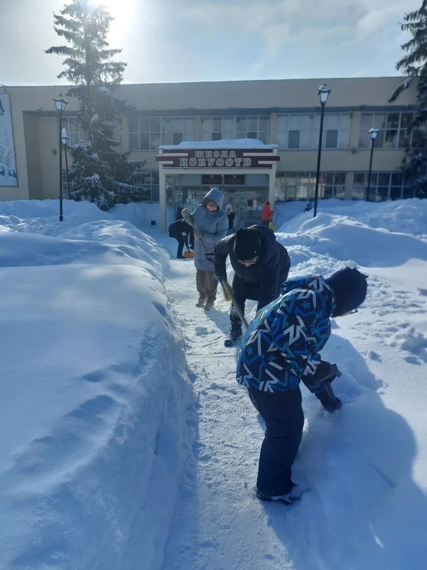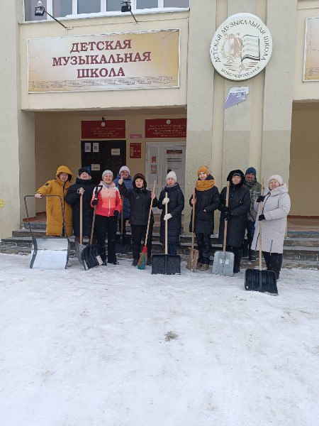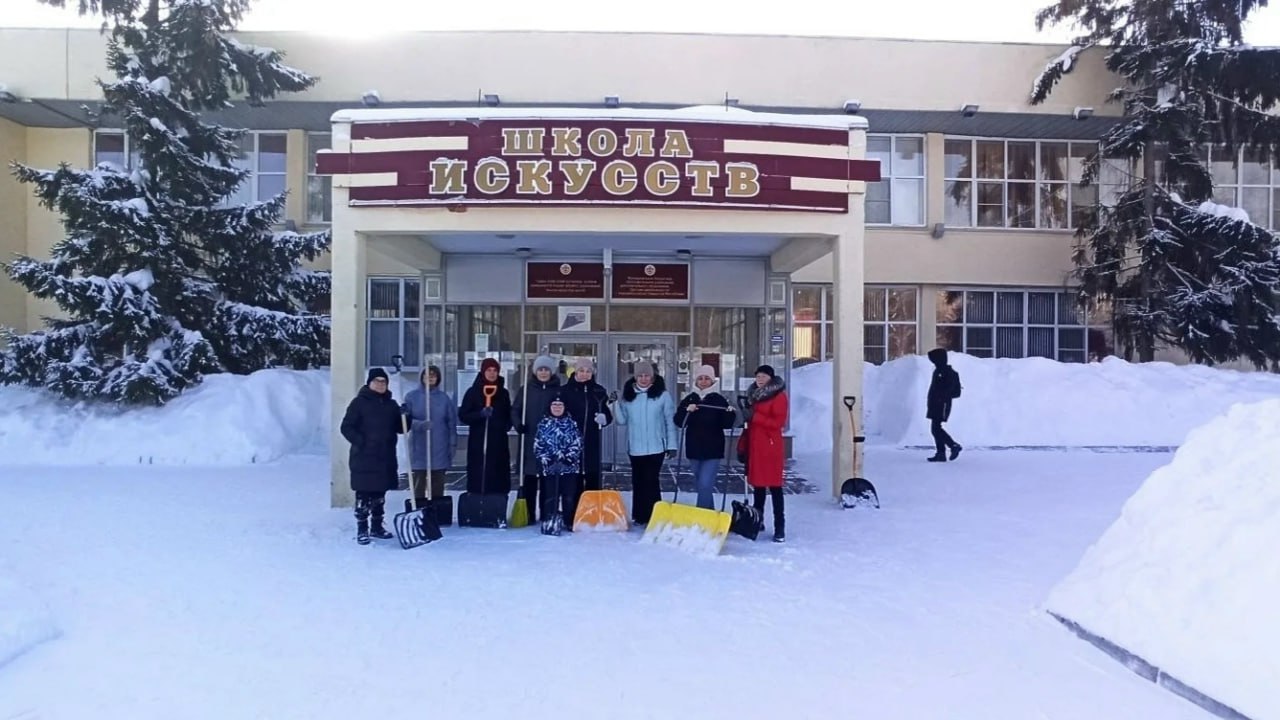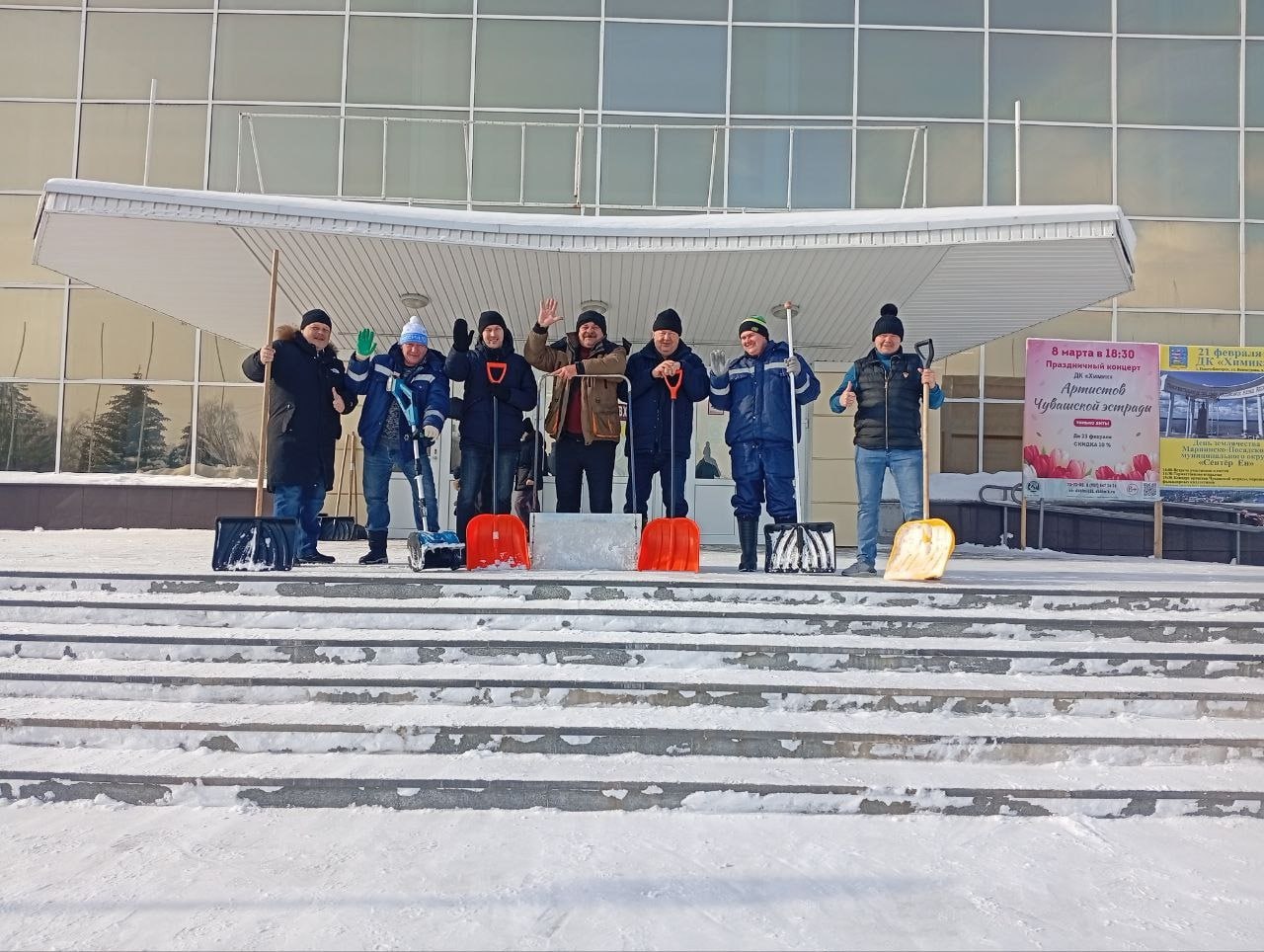 На проведение снежного субботника дружно вышли сотрудники Детской школы искусств, Детской музыкальной школы, Новочебоксарского музейного комплекса, Дворца Культуры «Химик» .