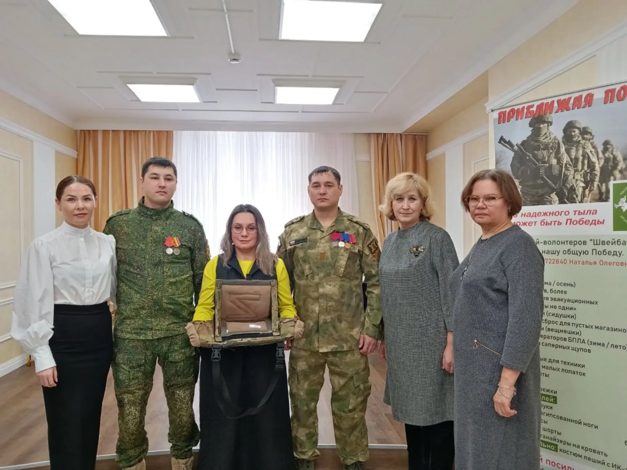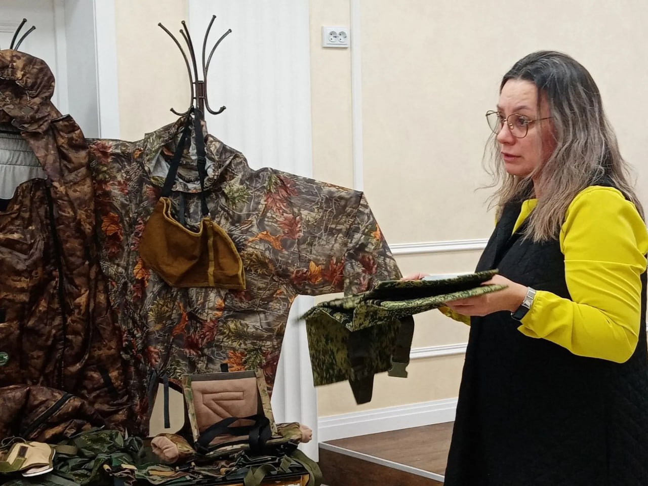 Большой интерес у ребят вызвало выступление Натальи Голубовой — руководителя швейного цеха «Швейбат „Голубки“». Она рассказала о работе волонтёровженщин: показала маскхалаты, подсумки и специальные рукавицы, которые изготавливают для бойцов, и объяснила, как их используют на фронте.