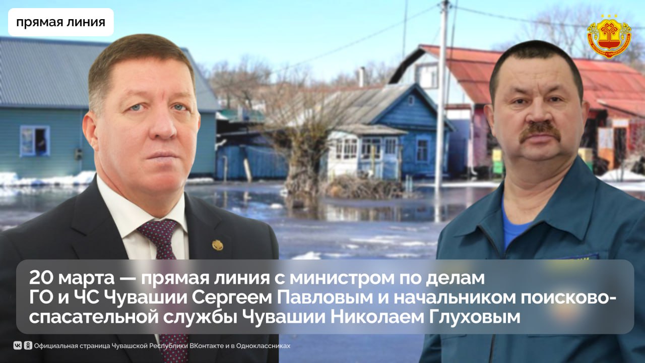 20 марта в прямом эфире Национального телевидения и Национального радио Чувашии пройдет прямая линия с министром по делам гражданской обороны и чрезвычайных ситуаций Чувашии Сергеем Павловым и начальником поисково-спасательной службы Николаем Глуховым.