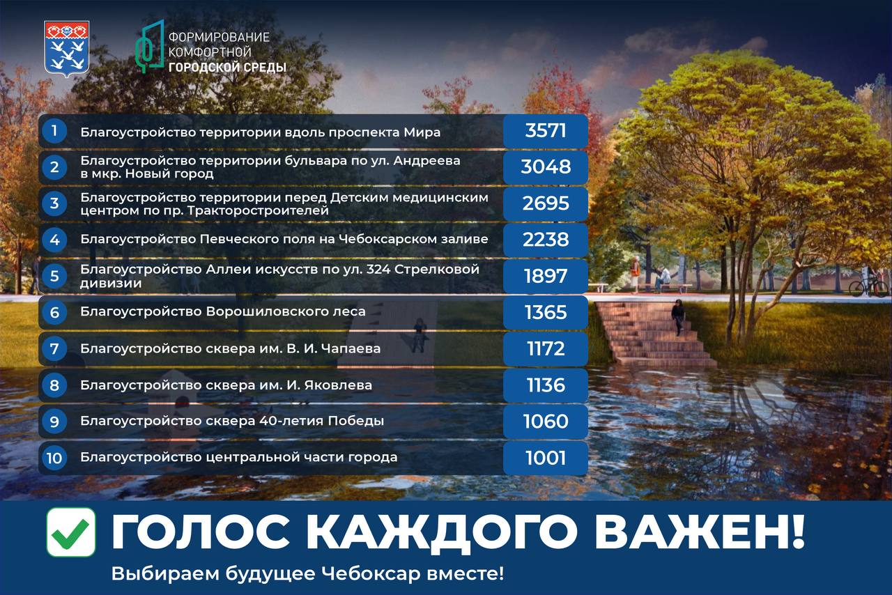 Голосование за общественные пространства 2026 года в самом разгаре. Мы собрали для вас актуальную инфографику: 10 проектов-лидеров, которые прямо сейчас борются за победу.