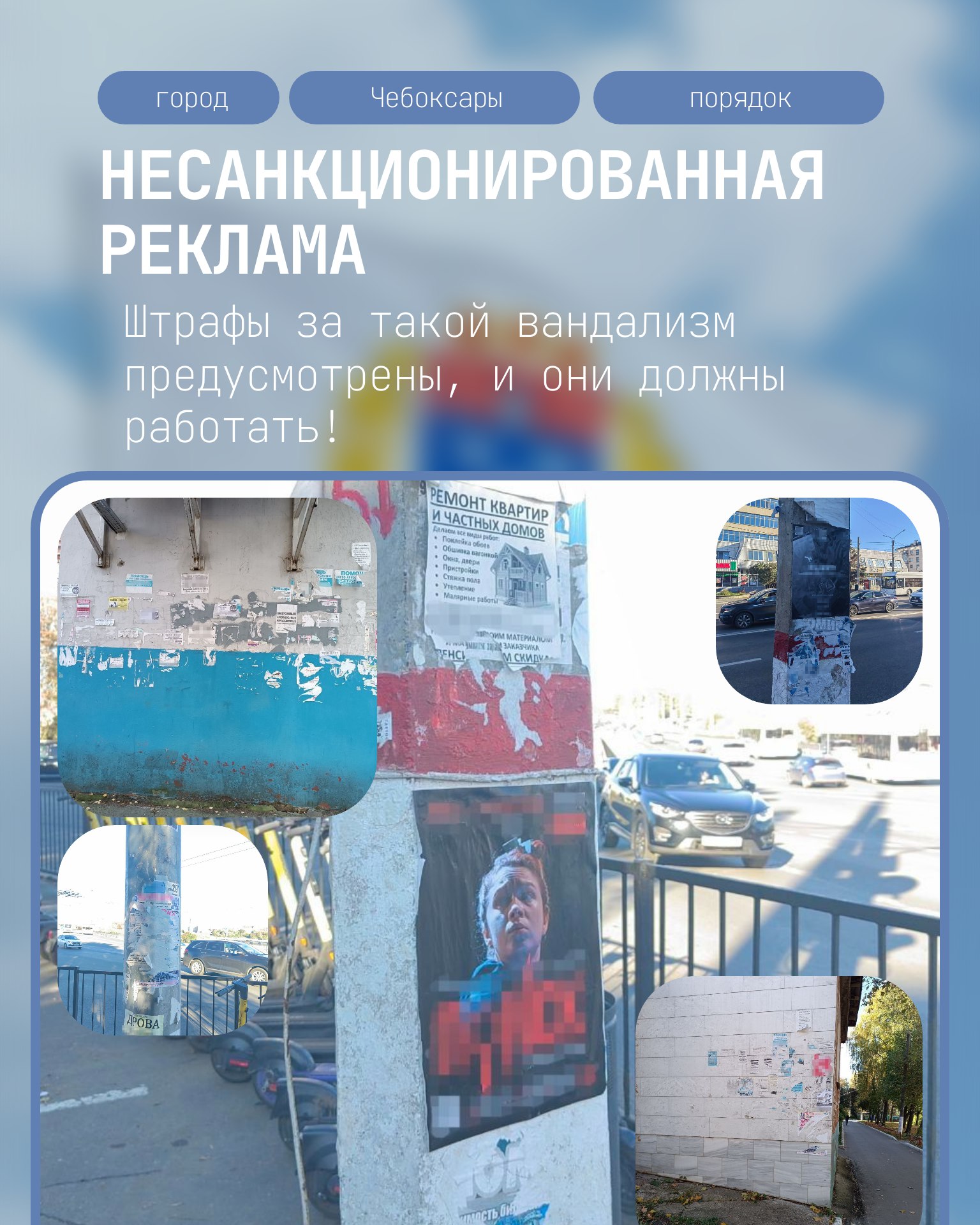 Чистый и ухоженный город — это визитная карточка Чебоксар, которыми мы по праву гордимся. К сожалению, внешний облик столицы продолжает страдать от несанкционированной рекламы, которая размещается на фасадах зданий, опорах освещения и ограждениях.