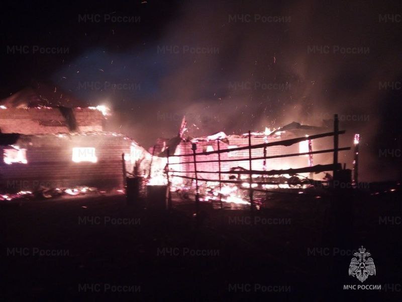 Вечером того же дня огонь уничтожил дом и надворные постройки 67-летней жительницы села Трехбалтаево Шемуршинского округа (момент пожара на фото). 13 сотрудников и 5 единиц техники МЧС России потушили пламя на площади 545 кв. м. Причина возгорания устанавливается.