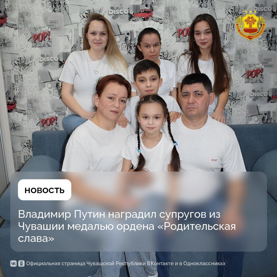 Многодетные родители Ивановы из деревни Пикшики Красноармейского округа удостоены медали ордена «Родительская слава». Соответствующий Указ подписал Президент России Владимир Путин.