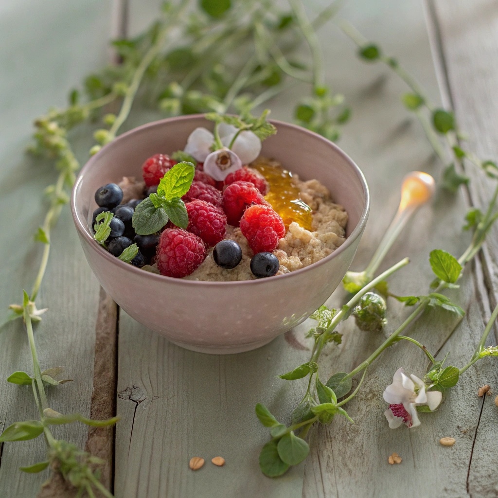 - Овсянка с лесными ягодами: Этот легкий и полезный завтрак зарядит вас на весь день. Соедините овсяные хлопья с малинами и черникой, добавьте мед для сладости и хрустящего миндаля для текстуры.