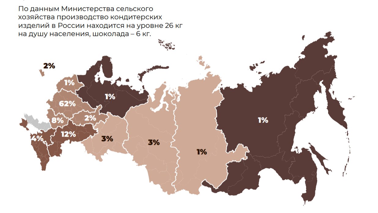 По данным Минсельхоз России именно столько производится кондитерских изделий в России. А мы в Чувашии не только сами едим, но и экспортируем.