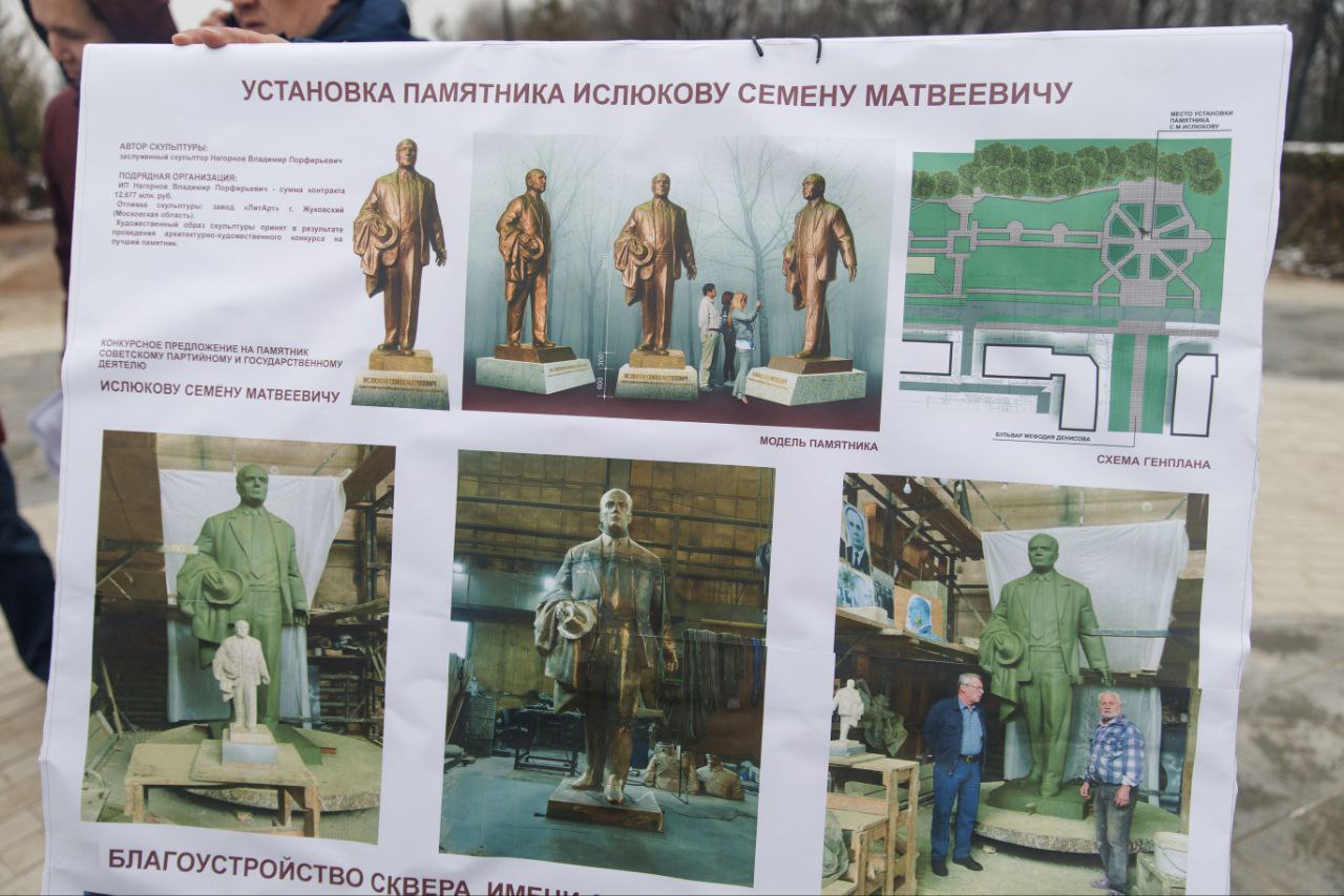Автором скульптуры стал Владимир Нагорнов и создание памятника сейчас на финишной стадии. Сам скульптор был лично знаком с Семеном Ислюковым и конечно это очень помогло в создании монумента.