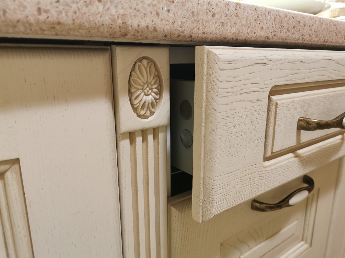 - Попробуйте доступ с помощью инструмента: Даже если ящик открывается лишь на несколько сантиметров, можно попробовать поддеть крепежи отвёрткой, подобравшись к ним через щель. Это может помочь освободить ящик, не повредив боковые стенки.