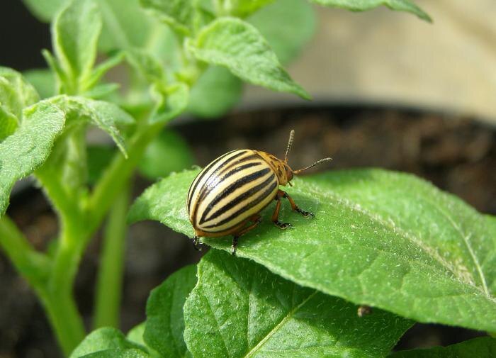 Колорадский жук необычайно прожорлив, и его любимые блюда — это листья картофеля и томатов. Взрослые особи и их личинки безжалостно поедают ботву, что приводит к серьезным потерям урожая и в некоторых случаях — к гибели растений. Всего за один сезон пара жуков может дать потомство до 1000 особей. Более того, они способны переносить различные болезнетворные микроорганизмы, что только усугубляет ситуацию.