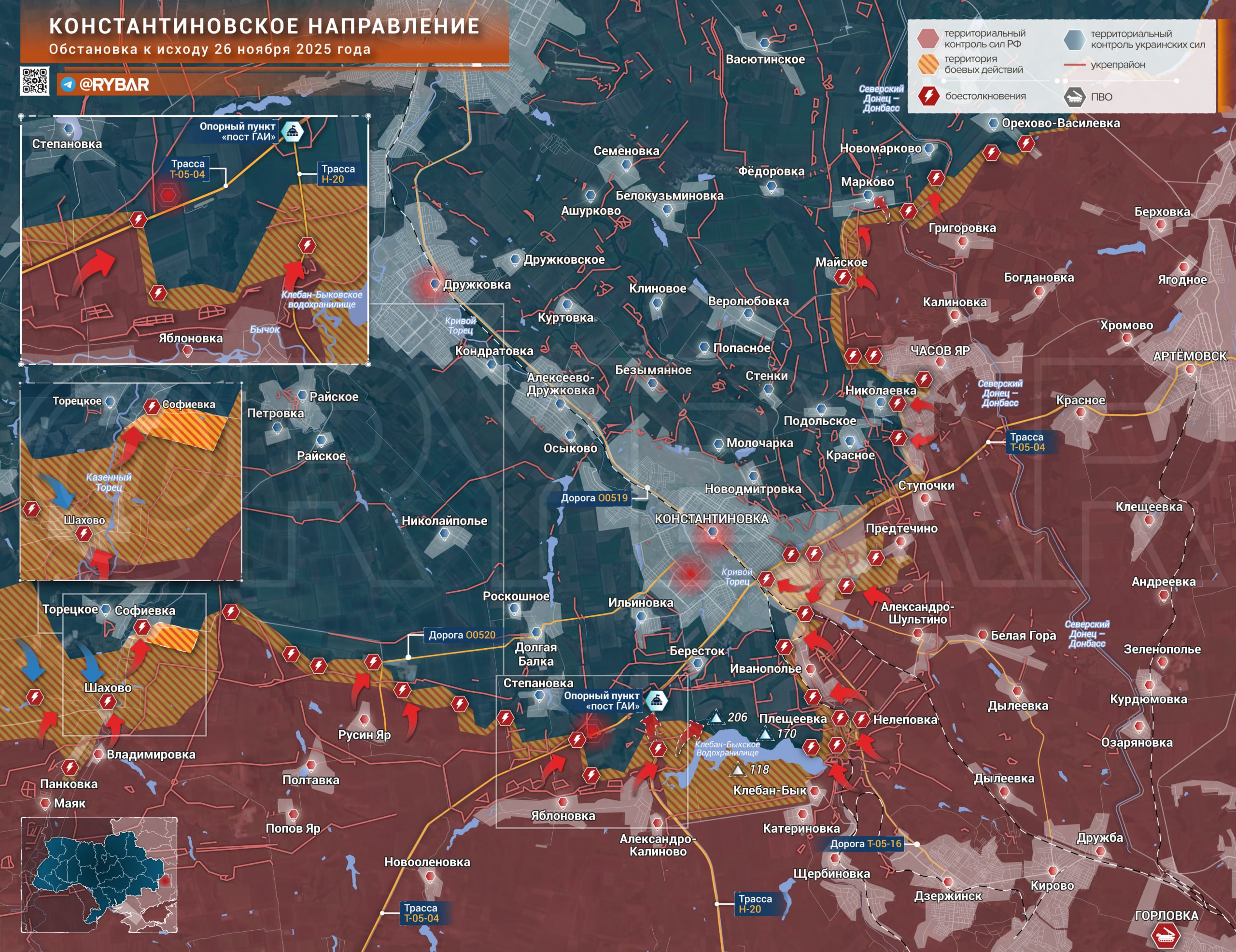 На Константиновском направлении бойцы ведут бои в окрестностях одноименного города, а на западном фланге атакуют в сторону Софиевки.