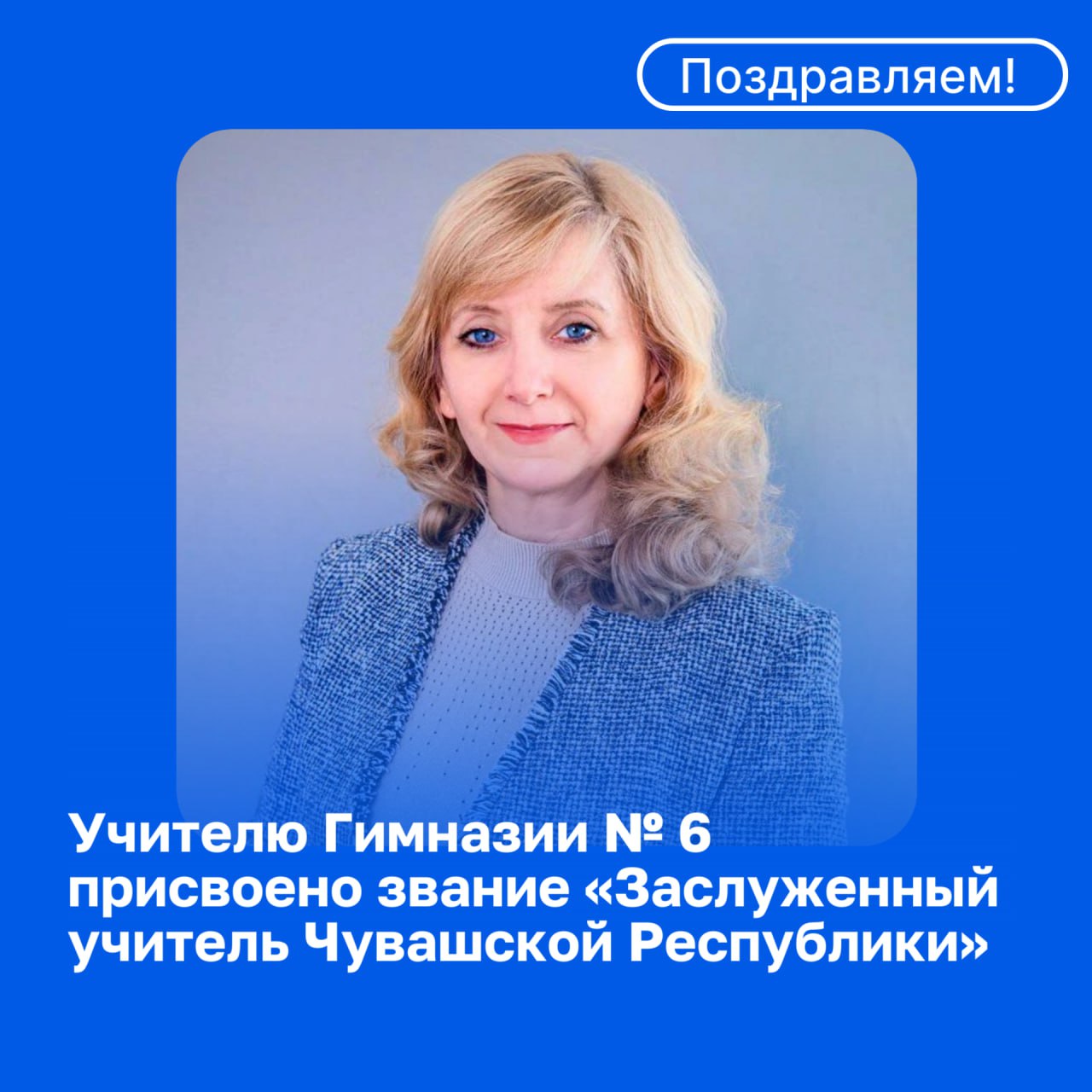 Учителю Гимназии № 6 Наталии Яковлевой присвоено почетное звание «Заслуженный учитель Чувашской Республики»