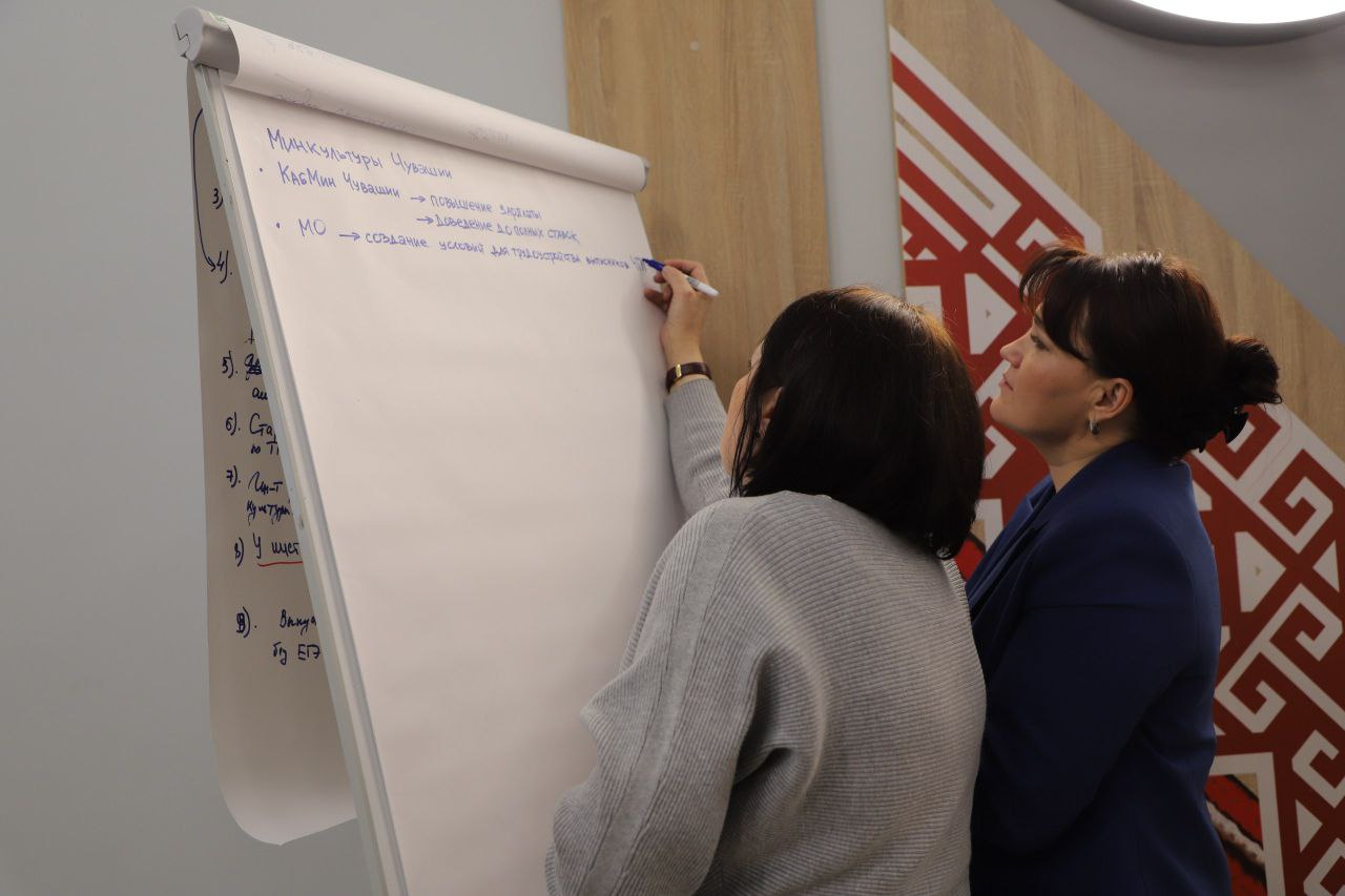 В Чувашском государственном институте культуры и искусств прошла стратегическая сессия с участием депутата Госдумы Аллы Салаевой и председателя «Союза женщин Чувашии» Натальи Николаевой.