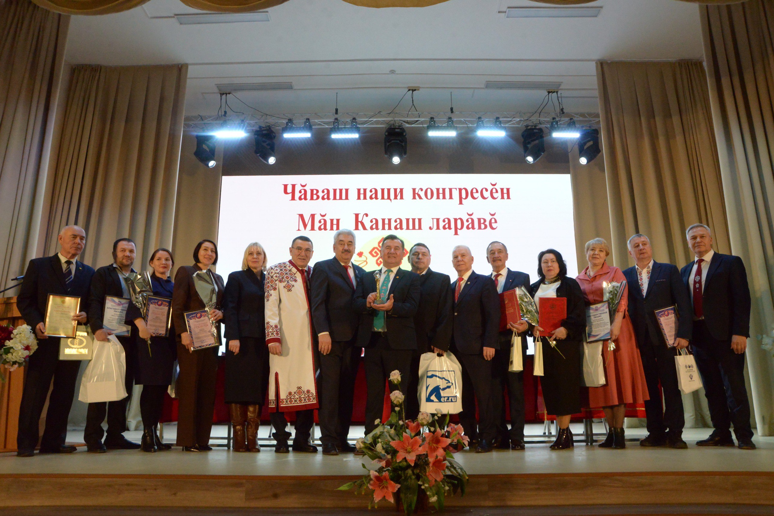 Чваш наци конгресн Мн канашн черетл ларвне хутшнакансене саламларм, чвашлх нче палрн хастарсене хисеп грамотисем тата тав хучсем парса чысларм.