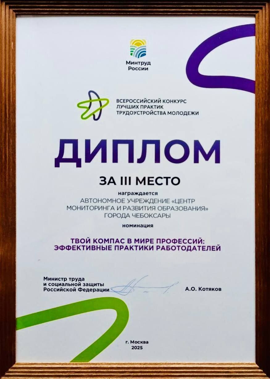 Среди лучших - подведомственное учреждение управления образования - АУ "Центр мониторинга и развития образования". Учреждение стало призером в одной из ключевых номинаций: «Твой компас в мире профессий: эффективные практики работодателей».