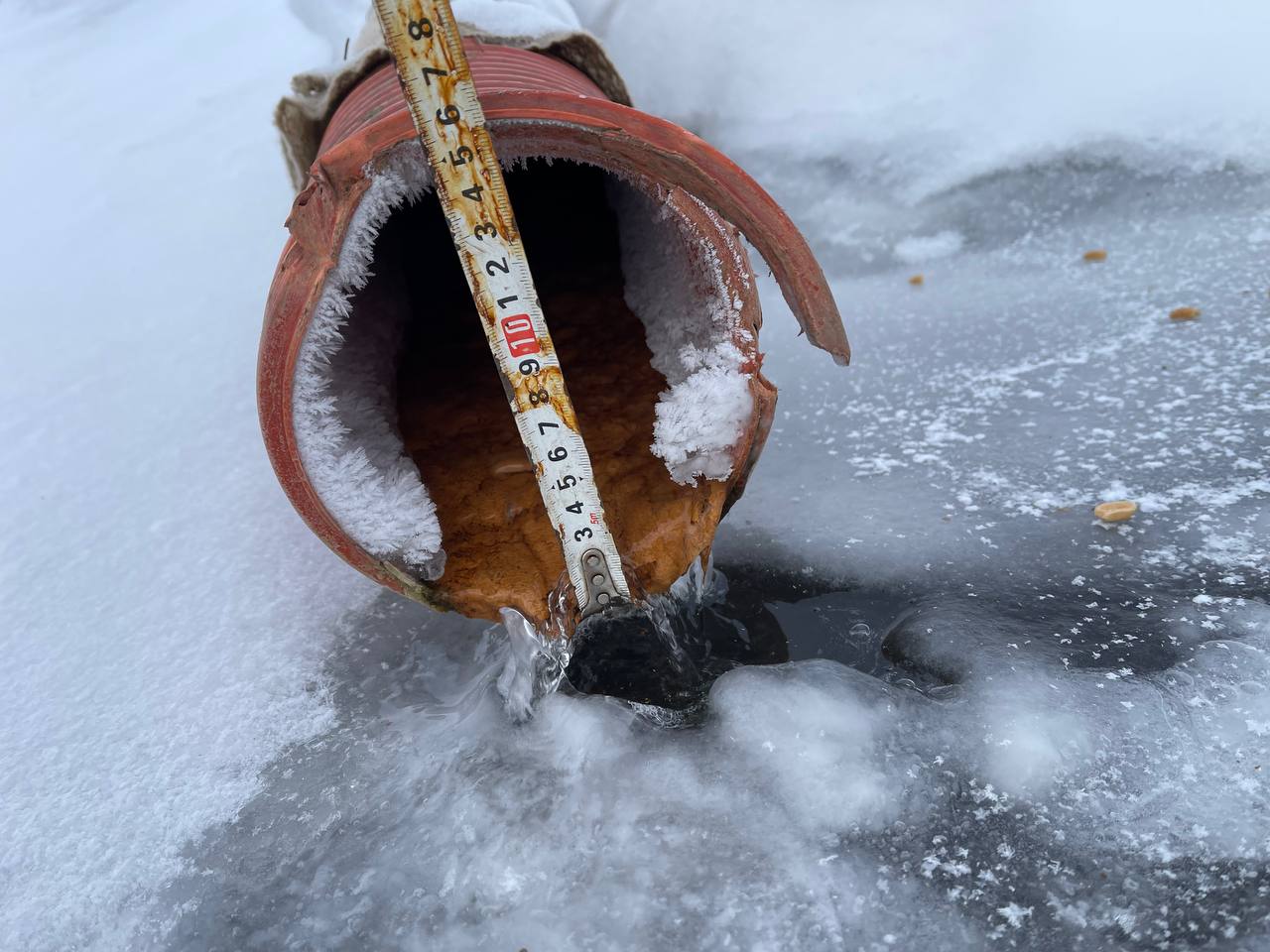 Обследование мест сброса сточных вод с обязательной фотофиксацией, замером расхода стоков и диаметра труб.