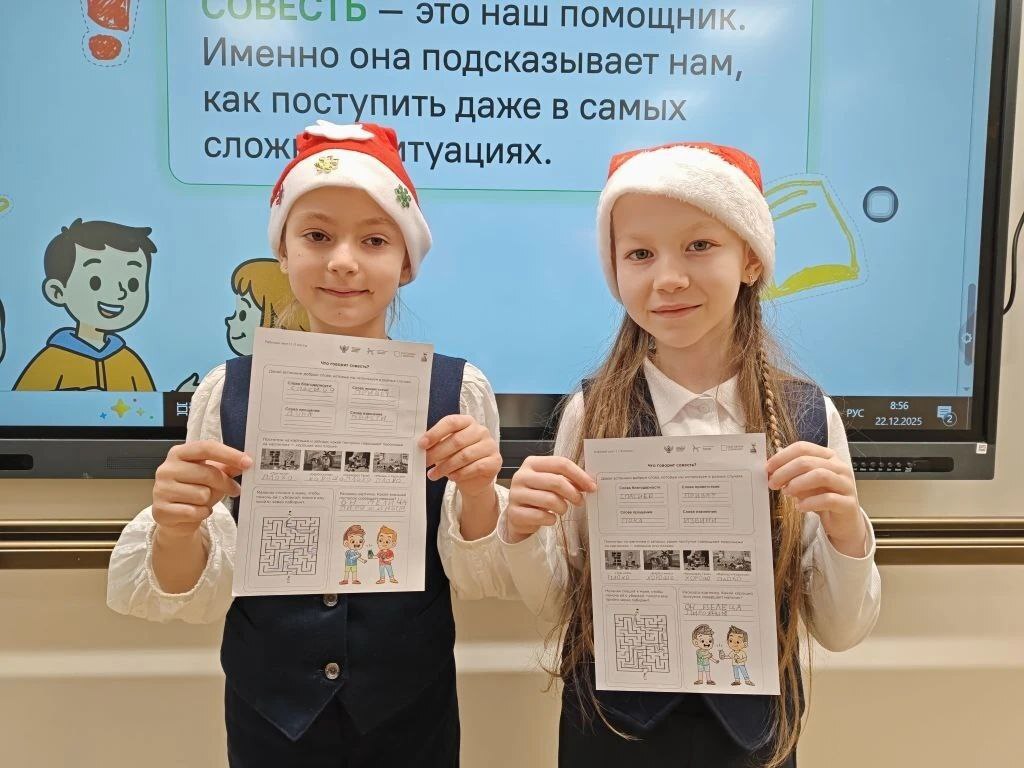 Участвуя в интерактивном задании, ребята пришли к выводу, что совесть является реальным ориентиром в сложных ситуациях. "Жить по совести — значит заботиться не только о других, но и о собственном душевном спокойствии", — отметили ребята.