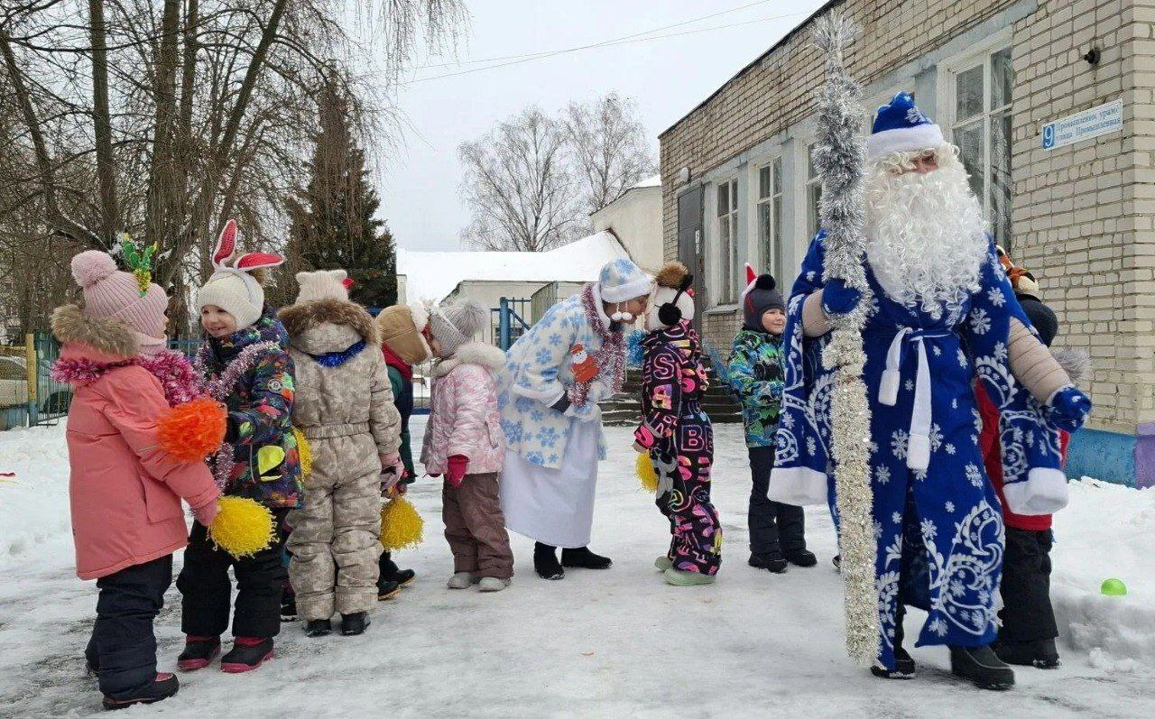 В течение всей этой недели воспитанники в костюмах сказочных героев вместе с Дедом Морозом и Снегурочкой участвуют в праздничных шествиях на свежем воздухе.