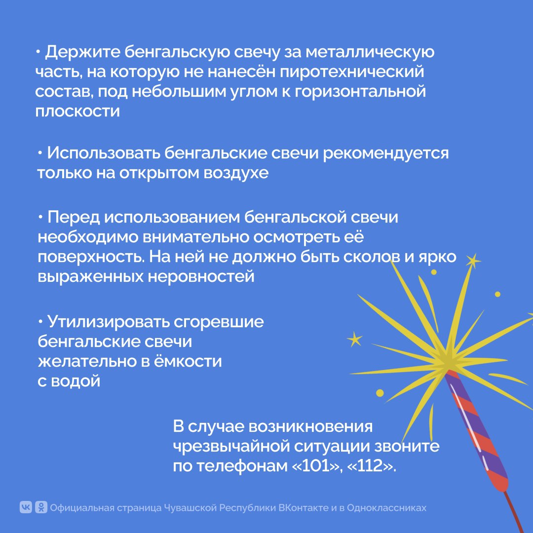 Также отметим, что с 25 декабря 2025 года по 11 января 2026 года в Чебоксарах введен особый противопожарный режим, который запрещает использование пиротехники. Аналогичные меры вступили в силу в Новочебоксарске, Алатырском и Ядринском округах.